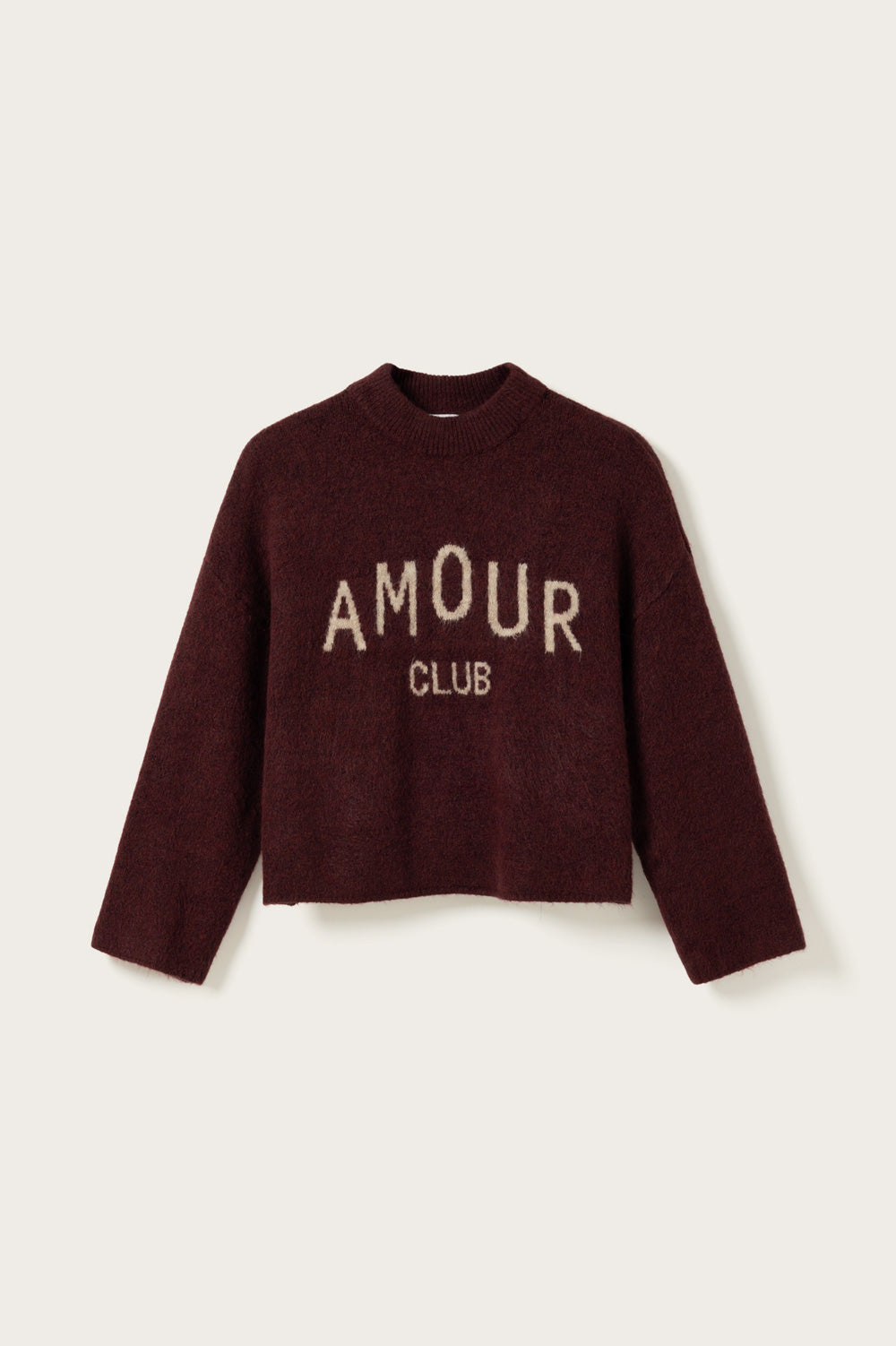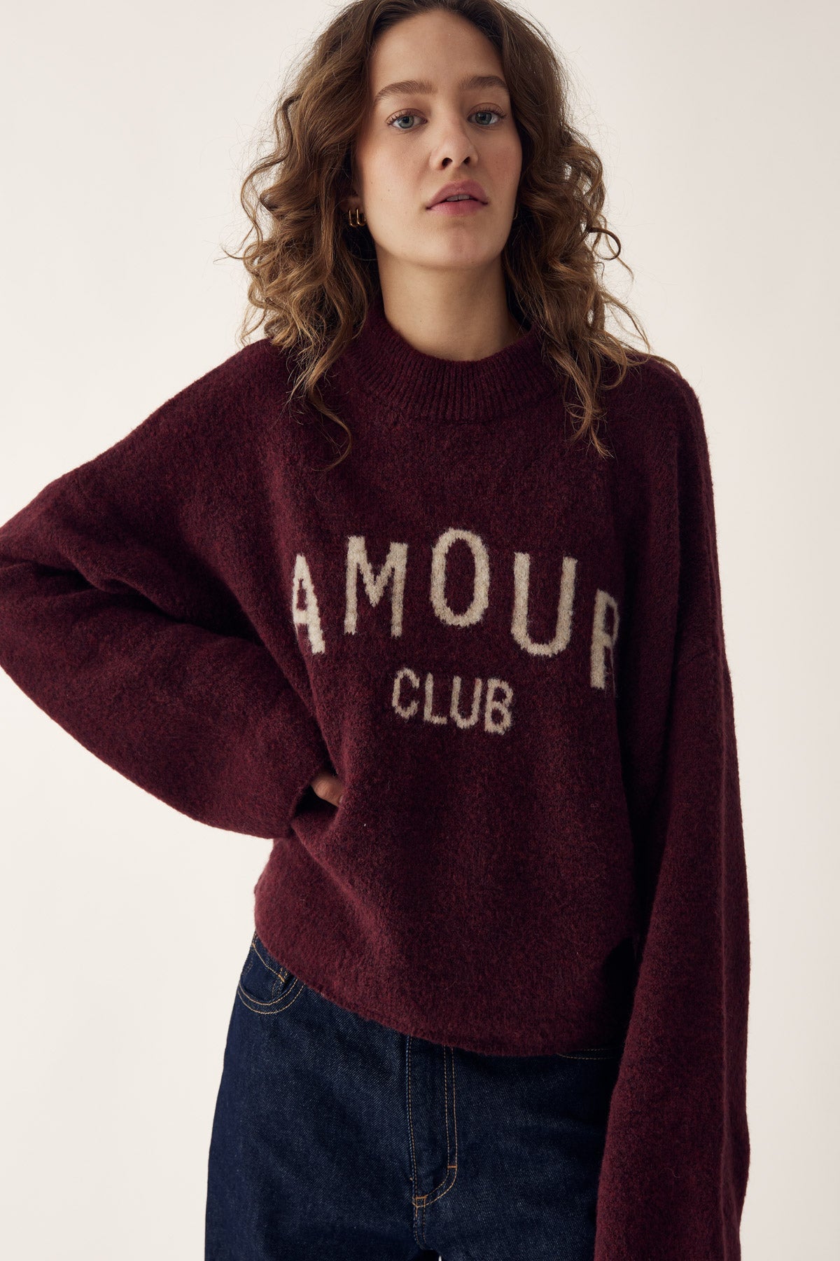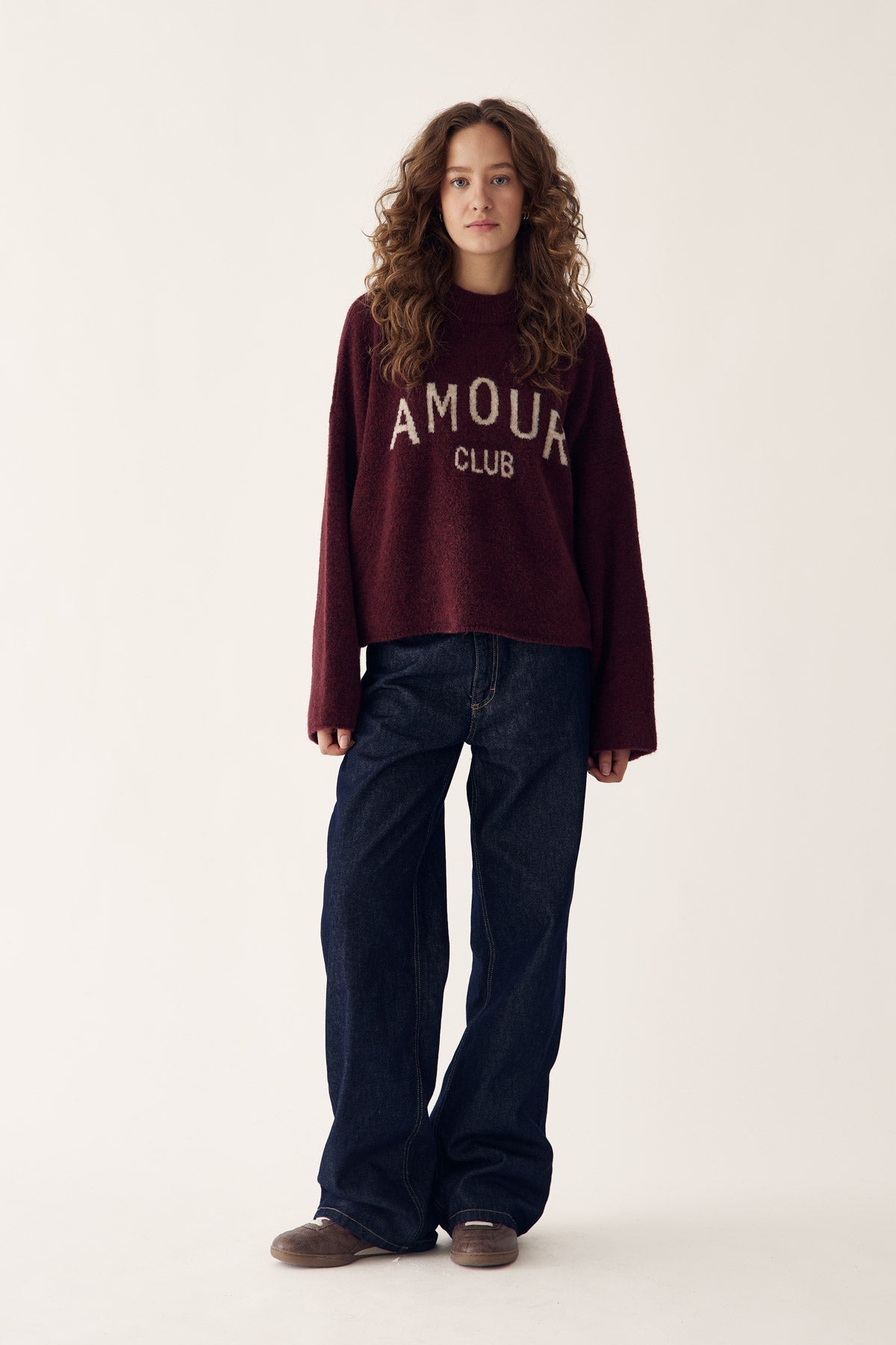 Amour Club Knit is een oversized trui met de tekst ‘Amour Club’ op de voorkant. De comfortabele pasvorm maakt het perfect voor dagelijks gebruik en kan eenvoudig gecombineerd worden met jeans of een nette broek voor een casual, stijlvolle look.