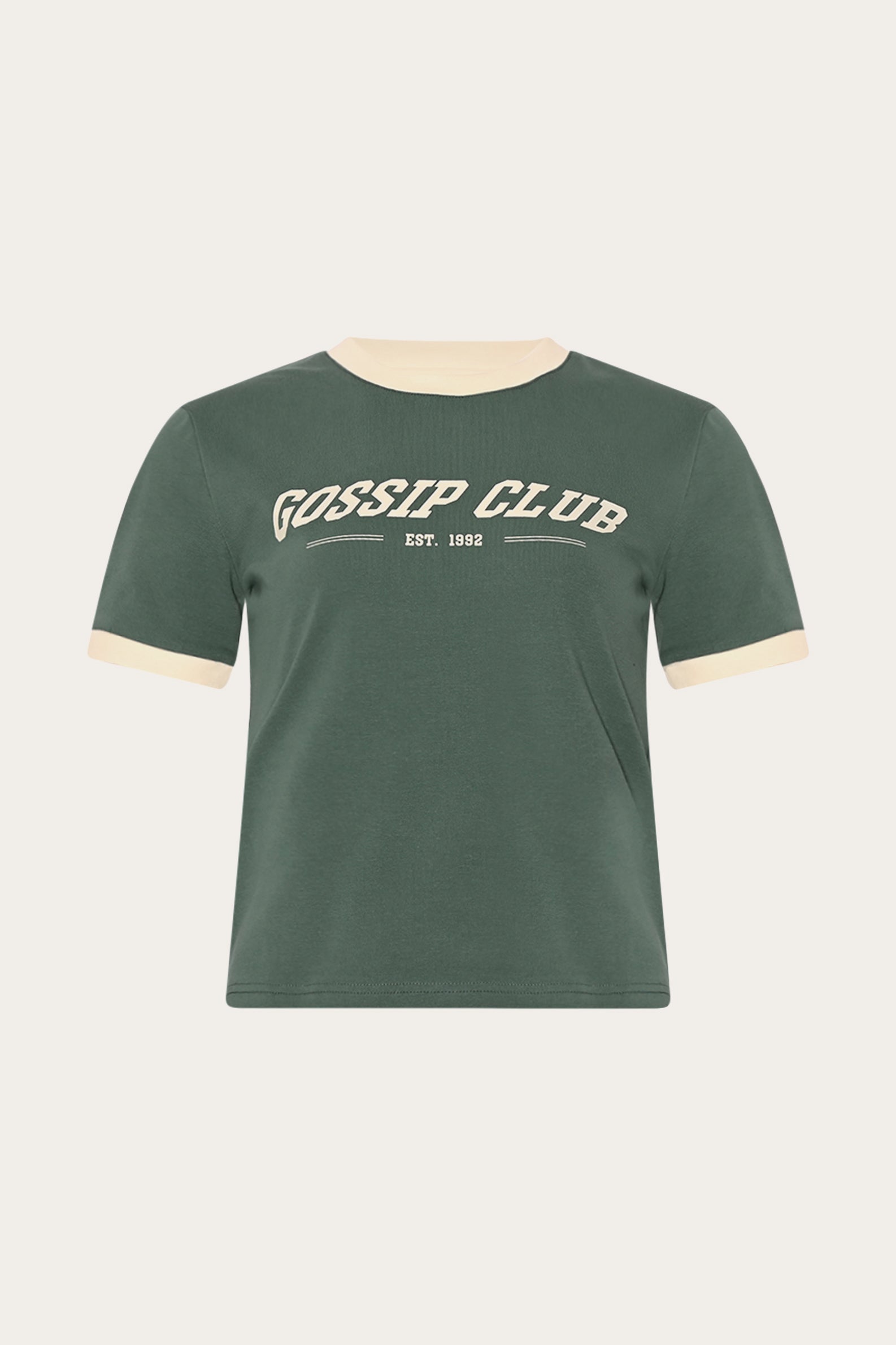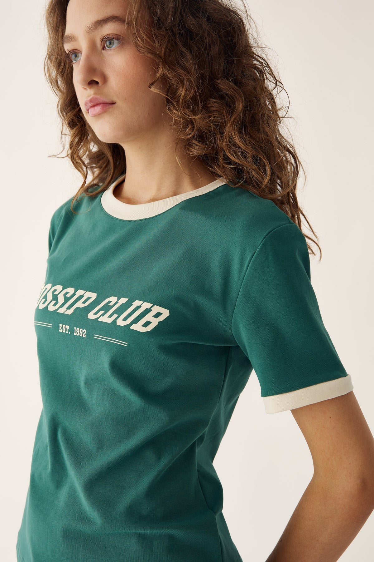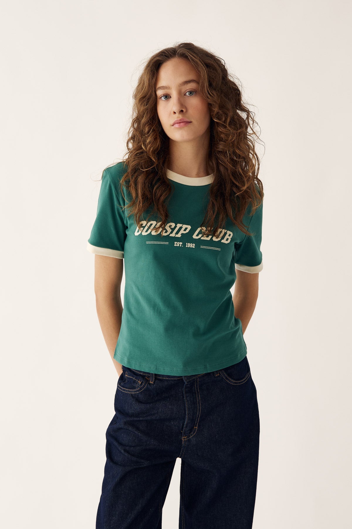Gossip T-shirt is een kortemouws, tijdloze T-shirt met ronde hals en tekstprint. Klassieke pasvorm met normale lengte en een standaard snit, waardoor hij gemakkelijk te combineren is met zowel broeken als rokken.