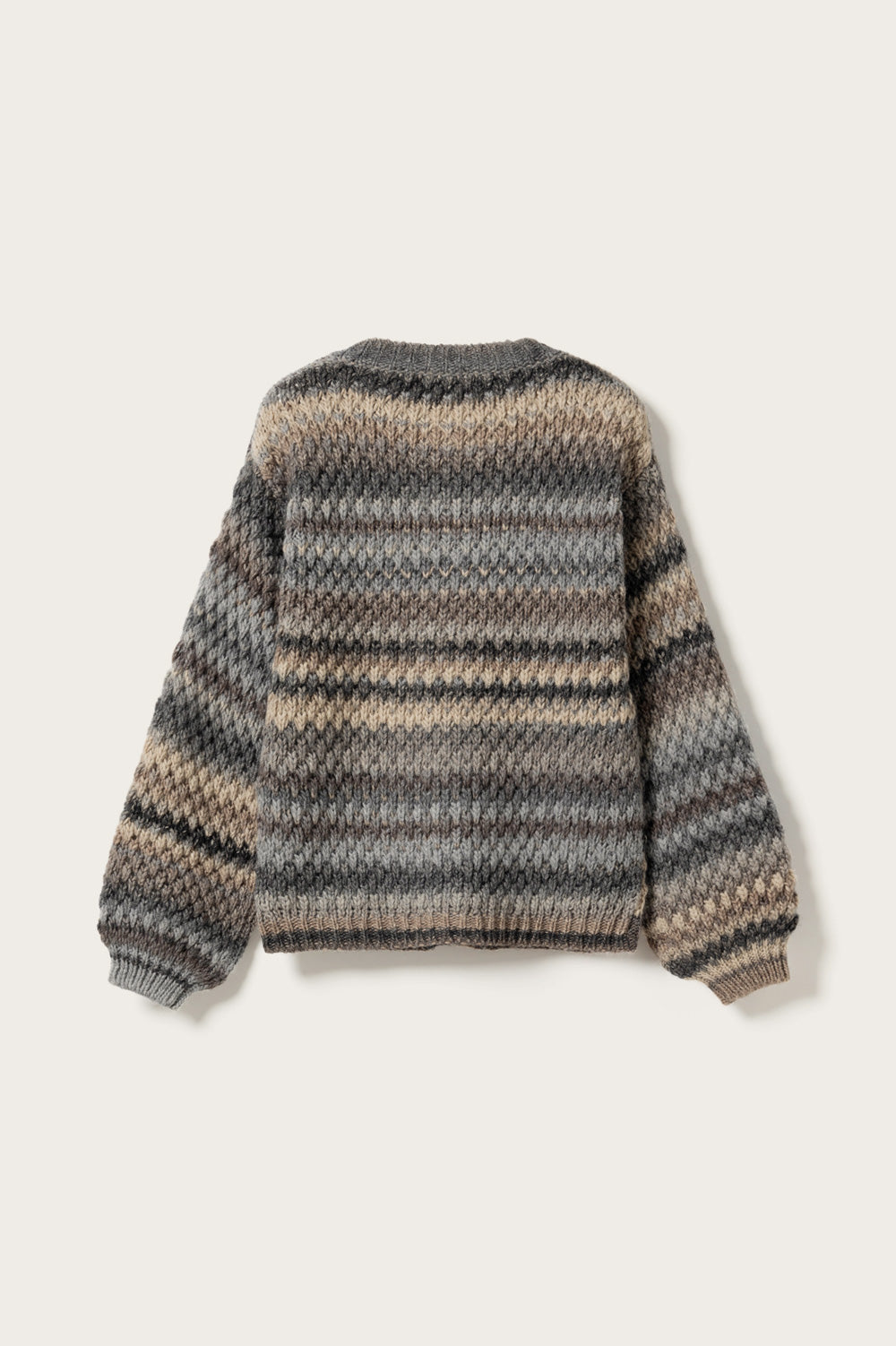 Dit grofgebreide vest is de perfecte mix van comfort en stijl. Het is ontworpen met een relaxte pasvorm en volumineuze mouwen en is gemaakt van een zachte, gestructureerde brei met een subtiel gestreept patroon dat diepte en warmte toevoegt. De knoopsluiting aan de voorkant en geribde boorden geven het een tijdloze, maar moderne uitstraling die gemakkelijk te combineren is. Draag het over een eenvoudige T-shirt of coltrui voor een moeiteloos chique look in koud weer.