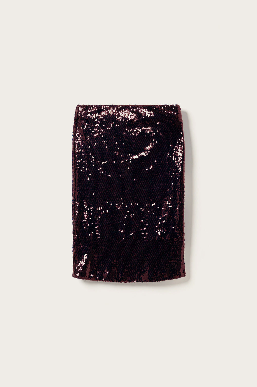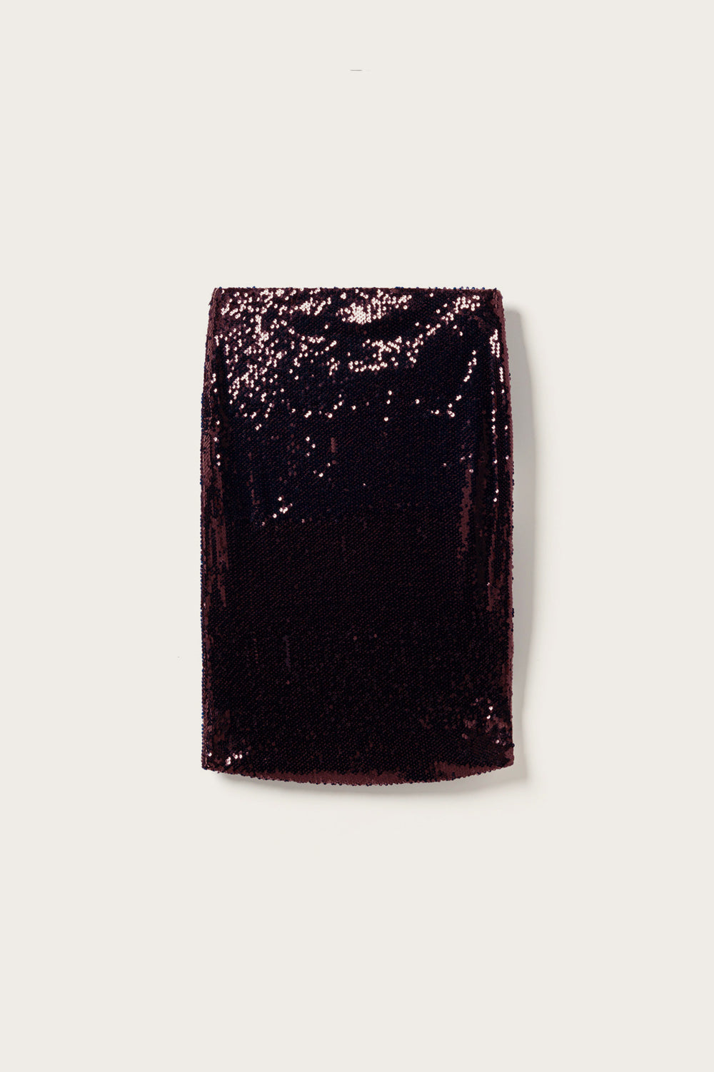 Kayden Long Skirt is een midilengte rok met pailletten en een ritssluiting aan de zijkant.