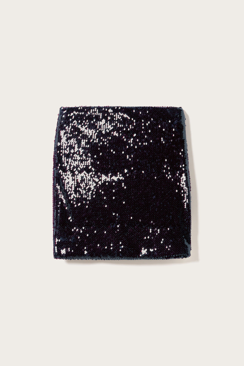 Kayden Skirt is een korte aangesloten rok met pailletten en een ritssluiting aan de zijkant.