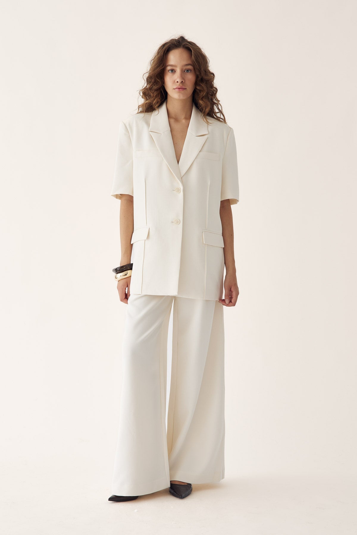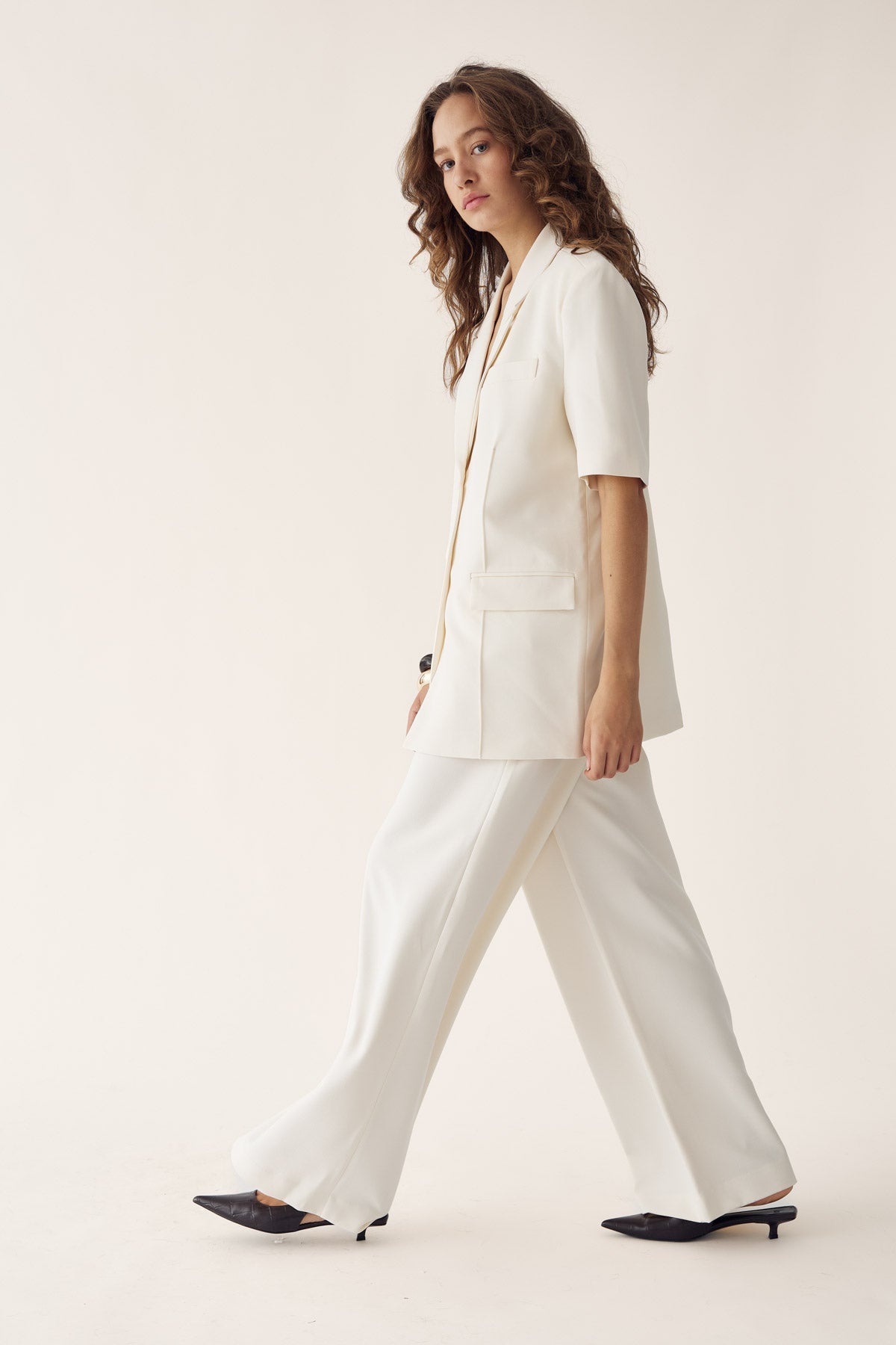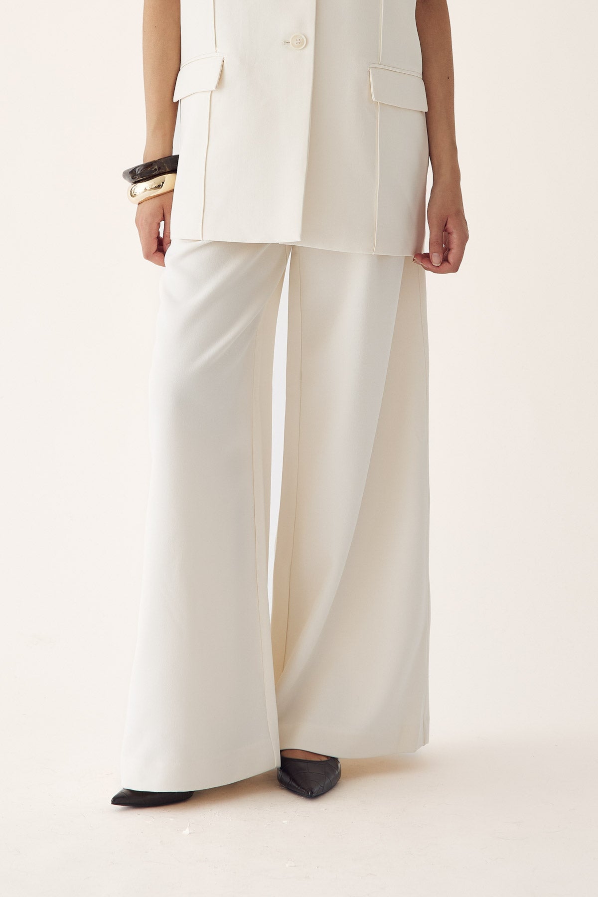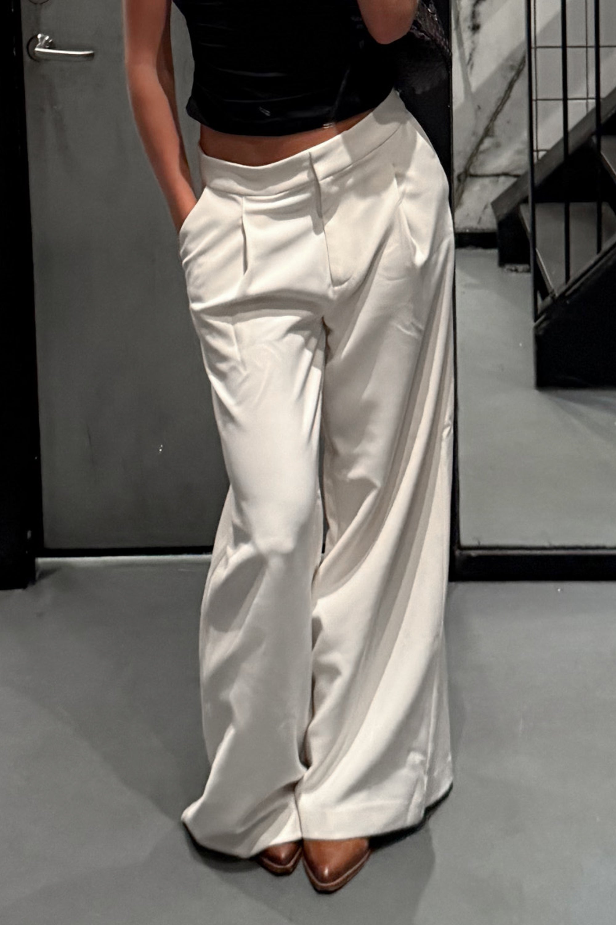 Kazia Pants hebben wijde pijpen, een middelhoge taille, plooien aan de voorkant en sierzakken aan de achterkant. Je kunt Kazia Pants gemakkelijk stylen voor dagelijks gebruik en feestelijke gelegenheden.