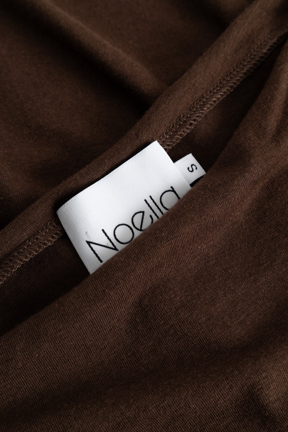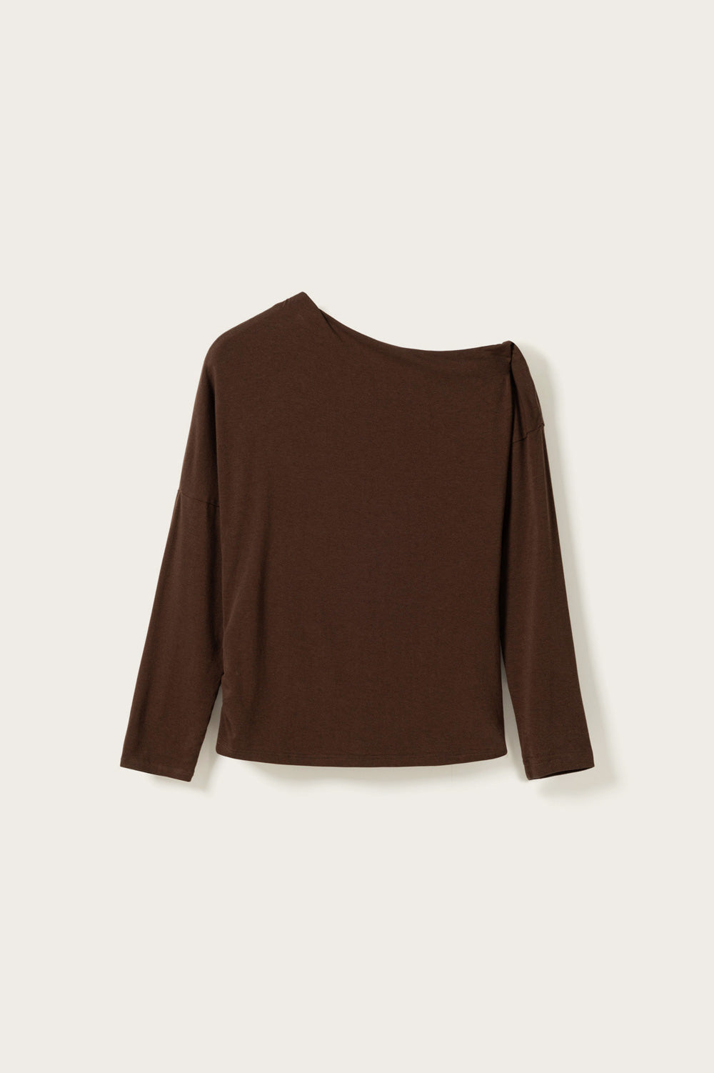 Lanna Top is een blouse met lange mouwen en een asymmetrische snit bij de rechterschouder, met een aangesloten pasvorm die gemakkelijk te stylen is voor zowel dagelijks gebruik als feestelijke gelegenheden.