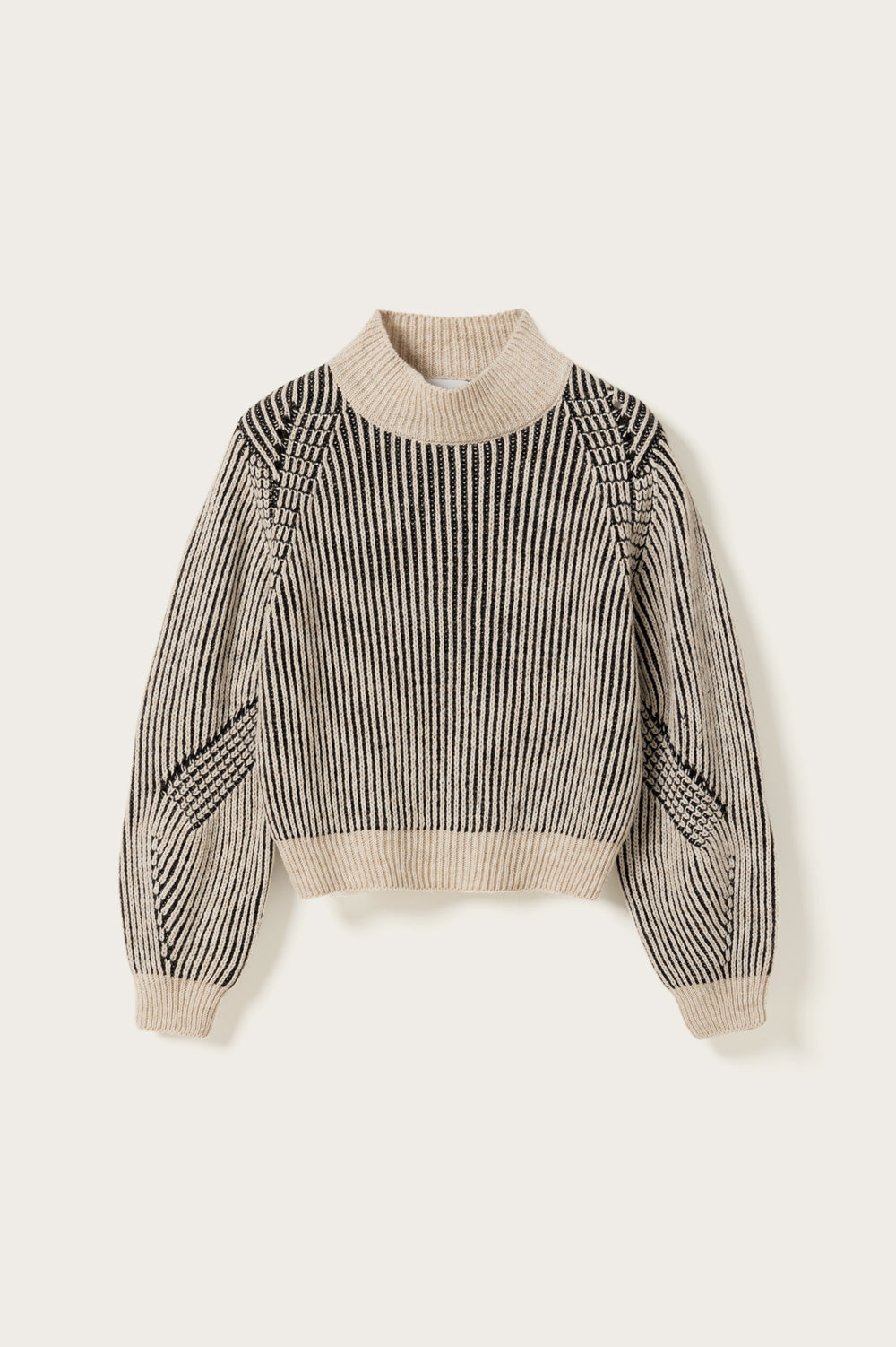 Lassie Knit is een gestreepte gebreide trui in een losse pasvorm met raglan-snit, hoge ribkraag en geribde mouwboorden.