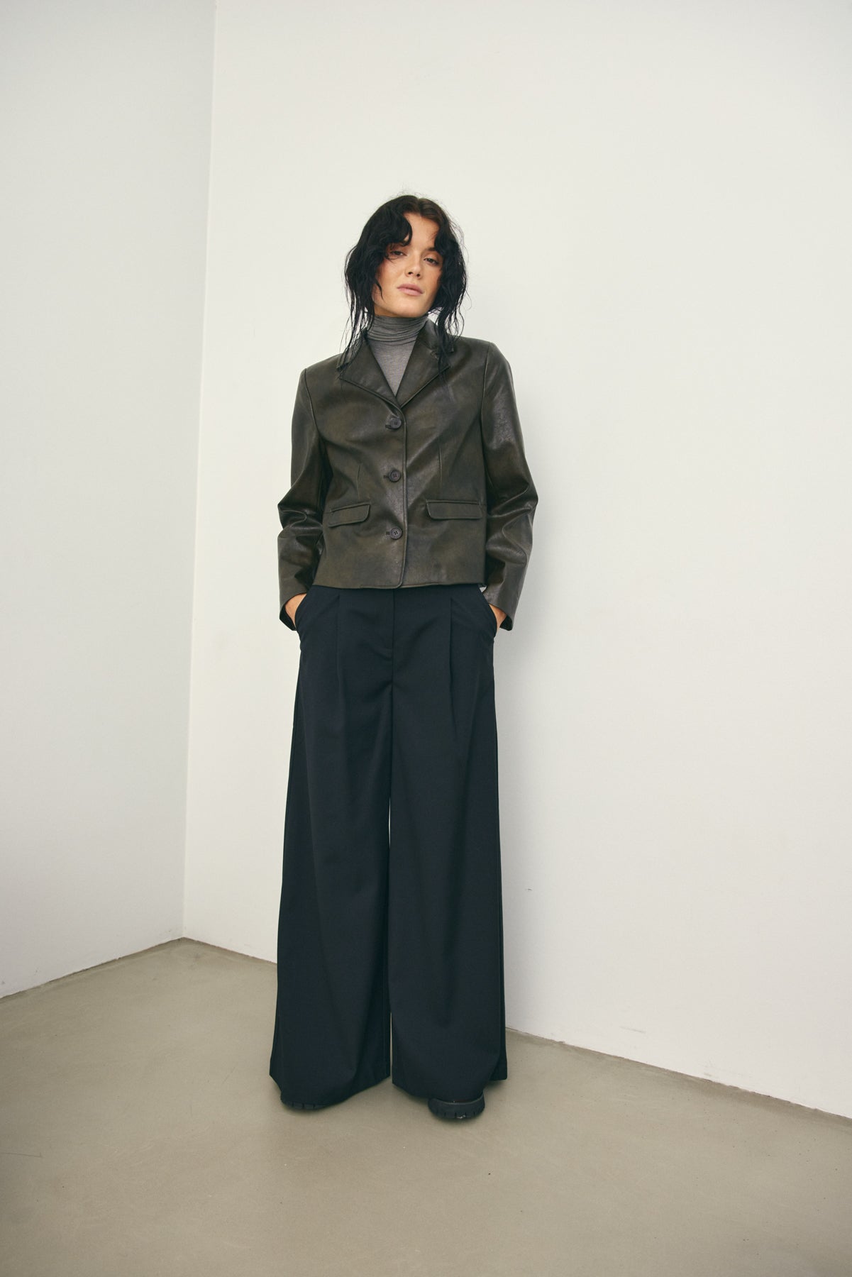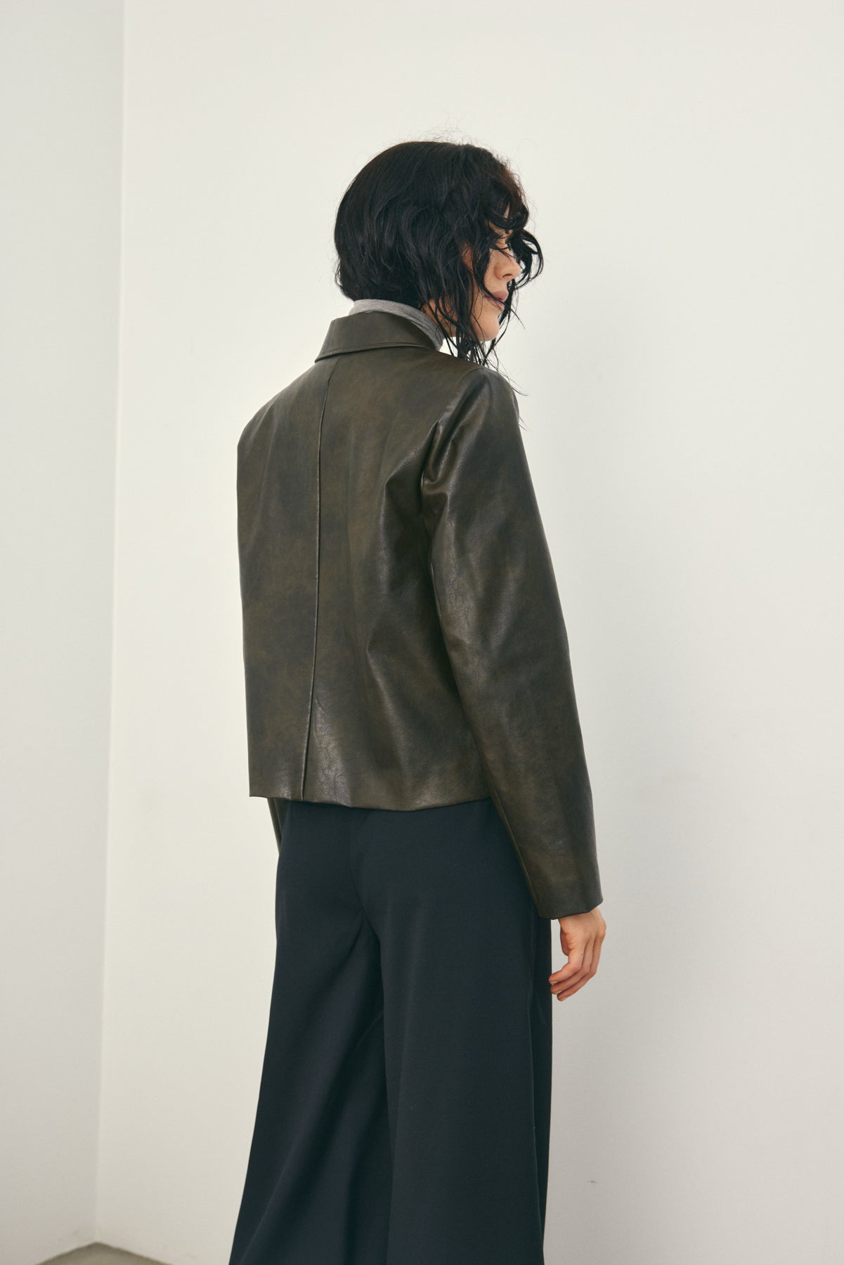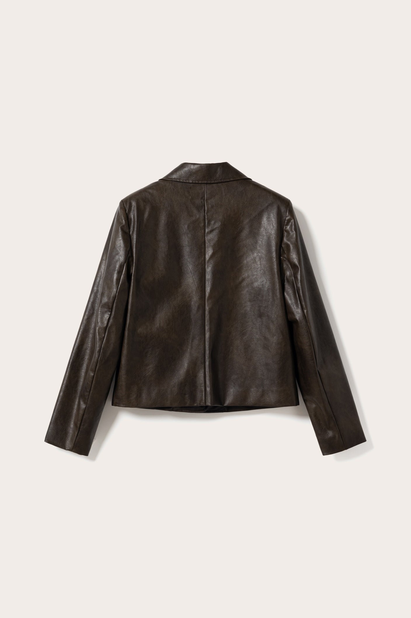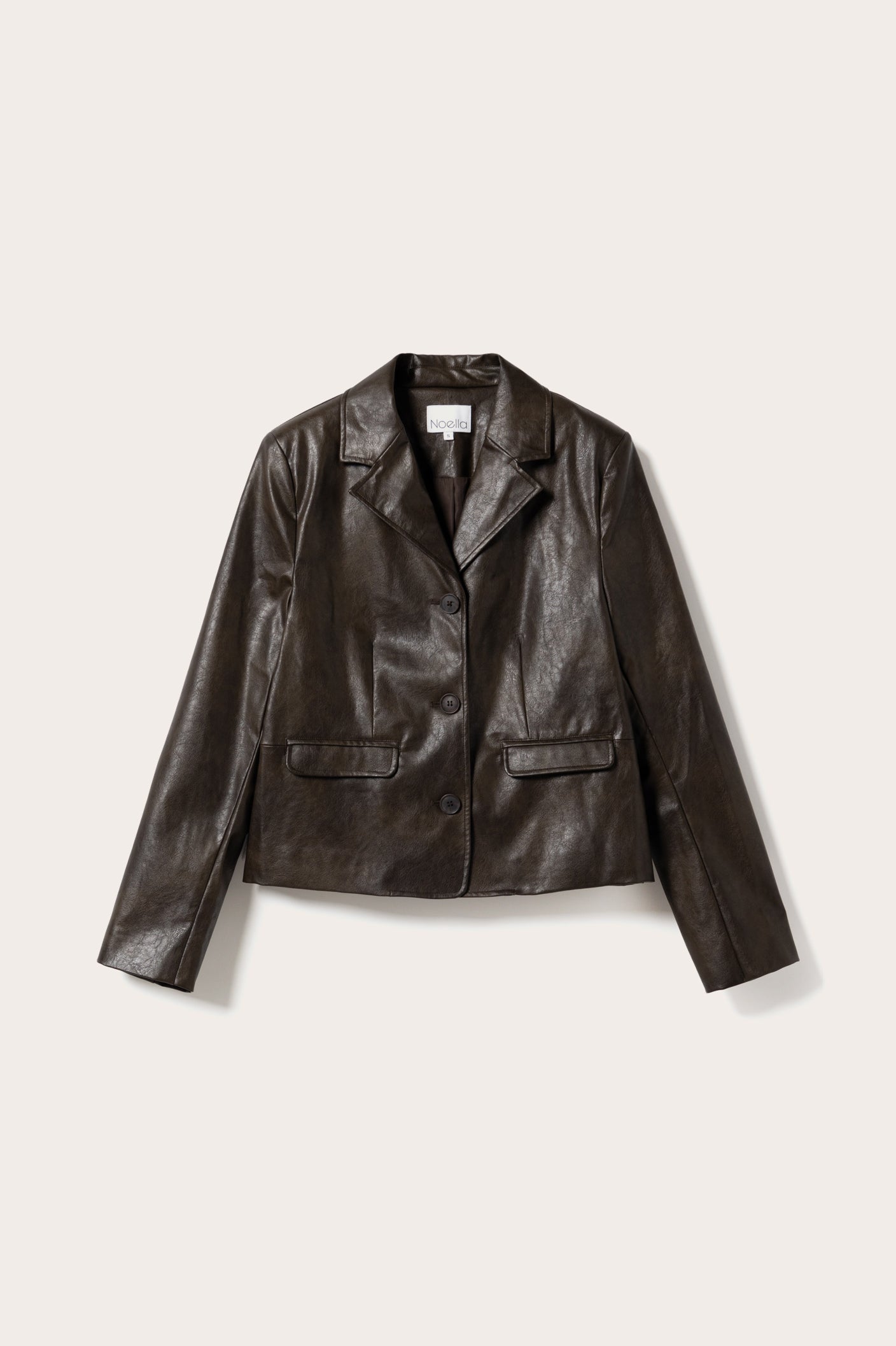 Laurica Jacket is een jack in leatherlook met een klassiek getailleerde pasvorm, V-hals, grote knopen, kraag en zakdetail. Draag Laurica Jacket zowel als jack als blazer.
