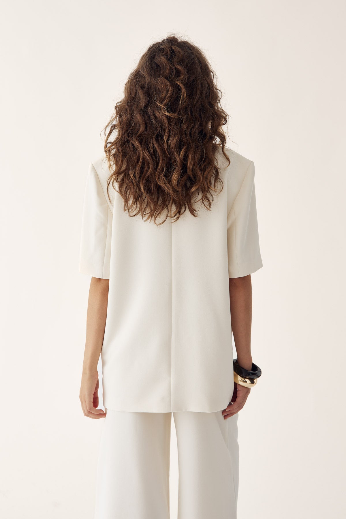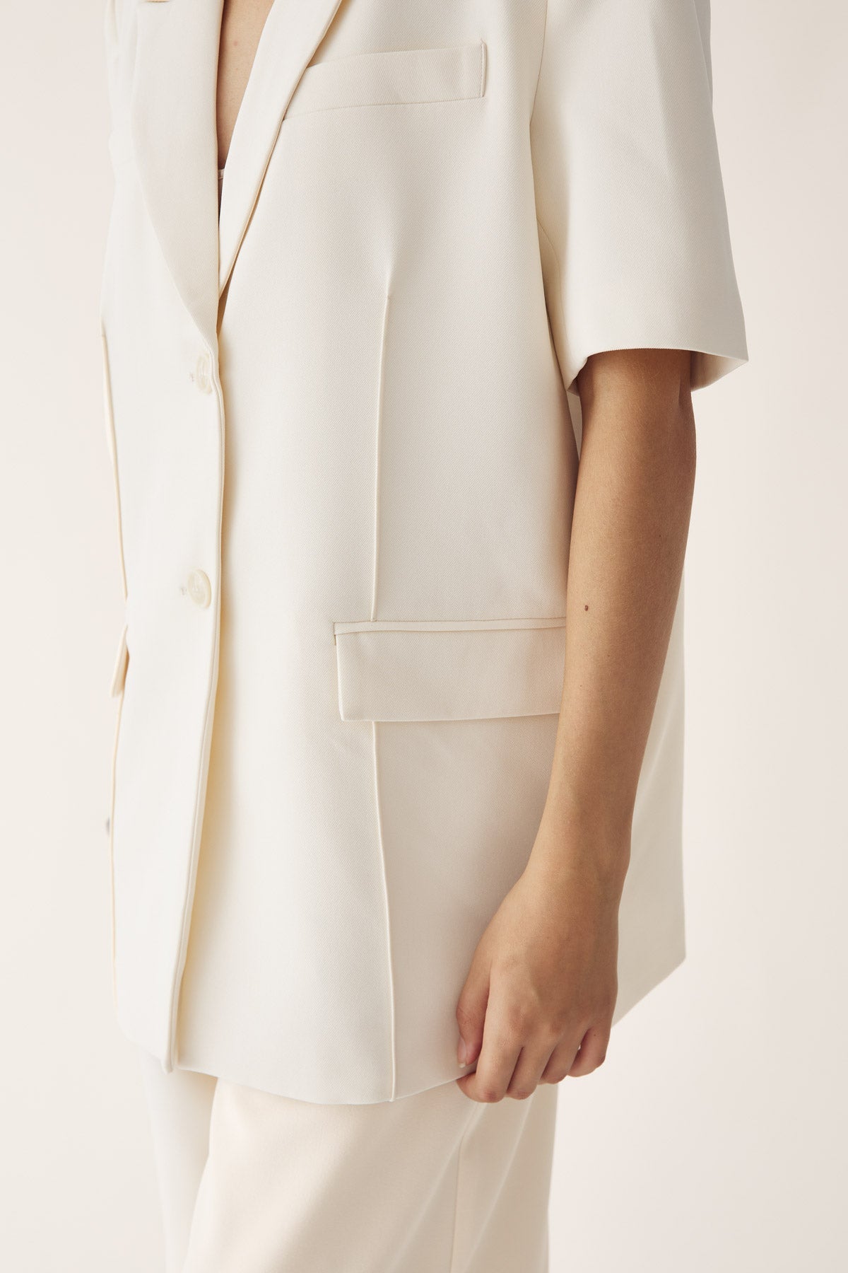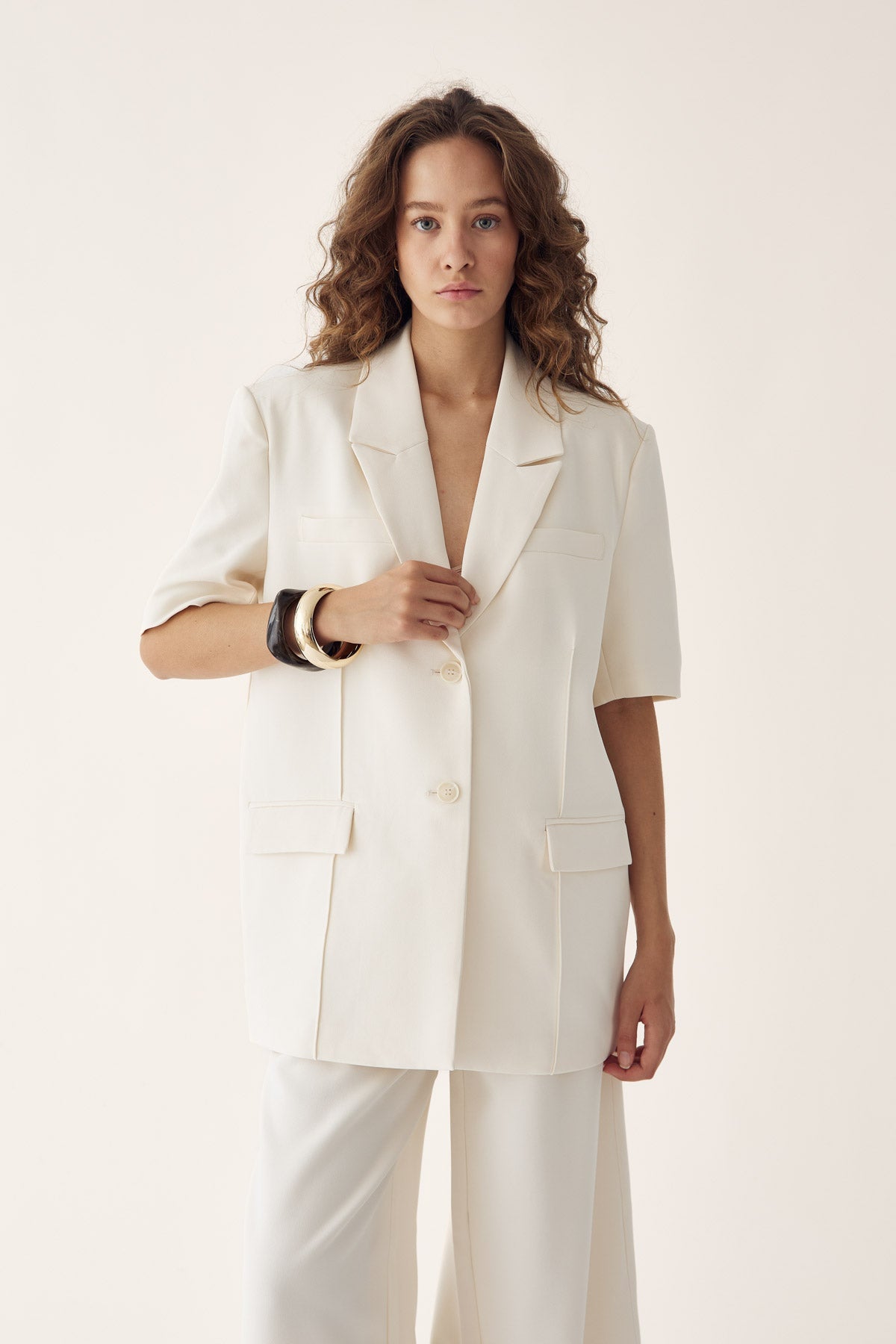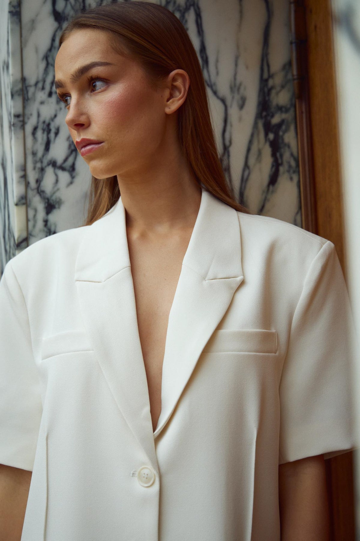 Leanne Blazer is een blazer met korte mouwen, zakken en coupenaden aan de voorkant. De Leanne Blazer heeft een oversized pasvorm.