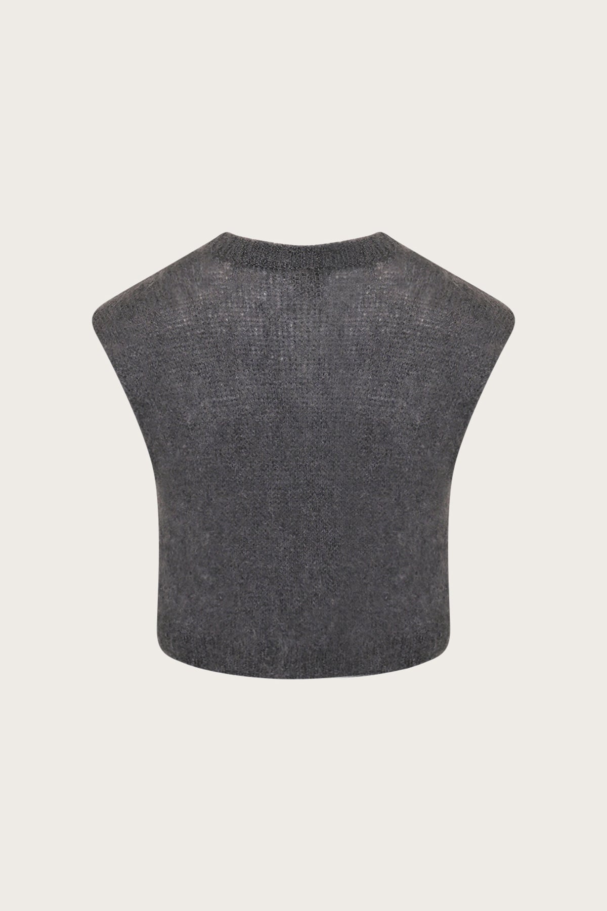 Lelia Knit is een slipover gebreide vest zonder mouwen met een ronde halslijn en een losse pasvorm.
