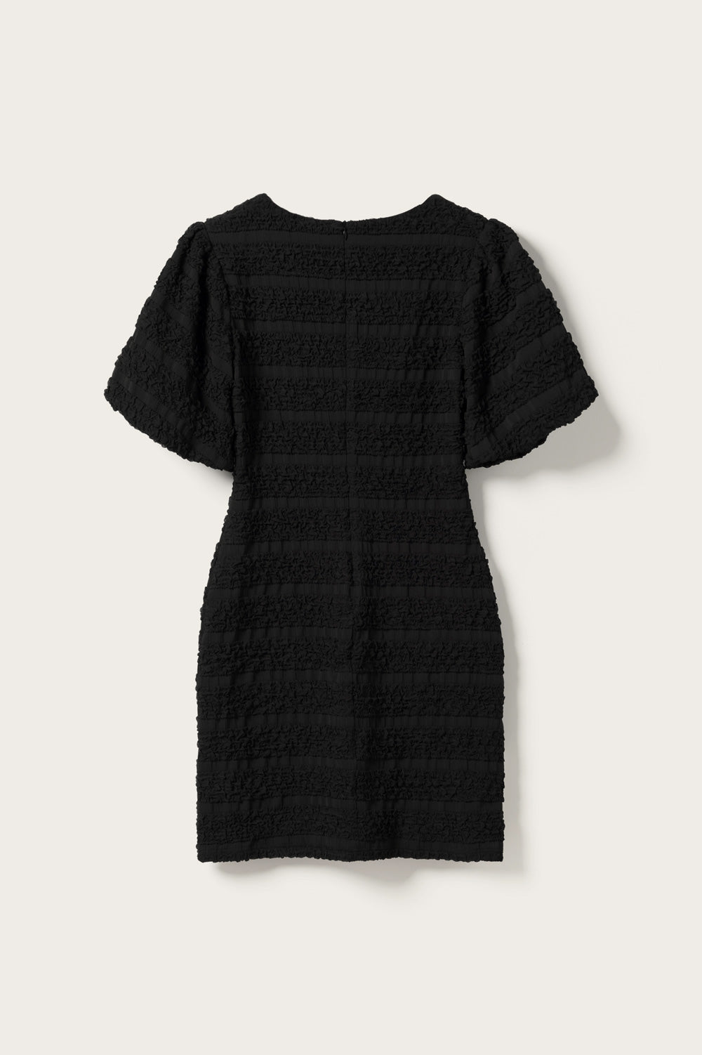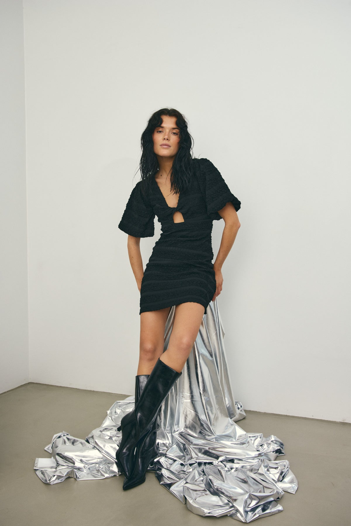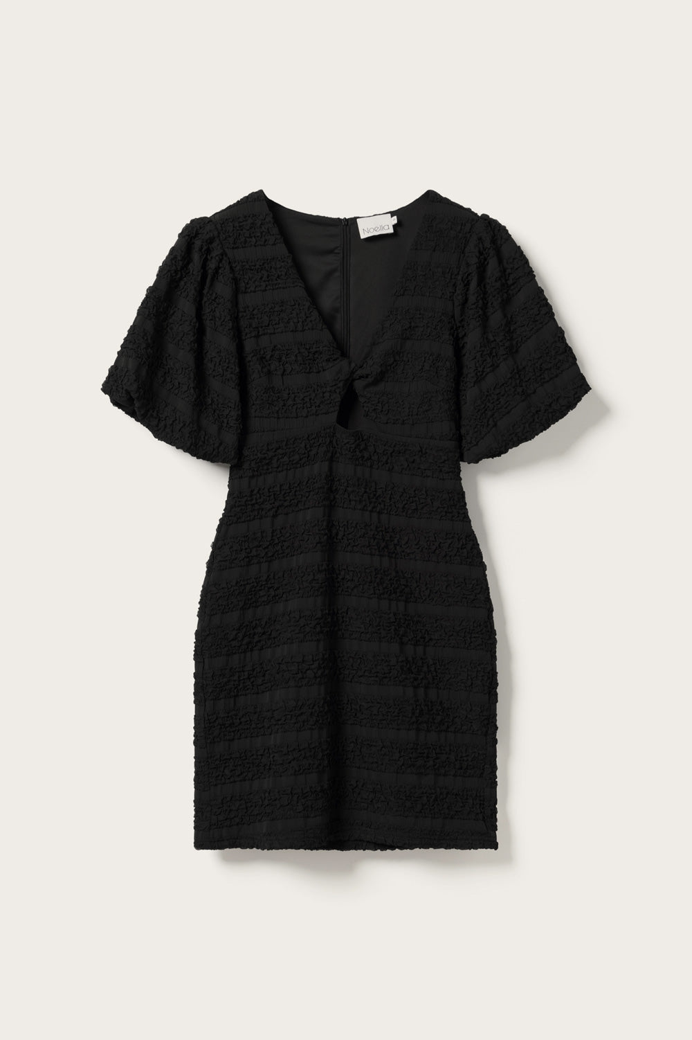 Lennice Dress is een korte jurk met volumineuze ballonmouwen en een cutout aan de voorkant. Perfect voor feestelijke gelegenheden en te combineren met hakken of laarzen voor een moderne partylook.