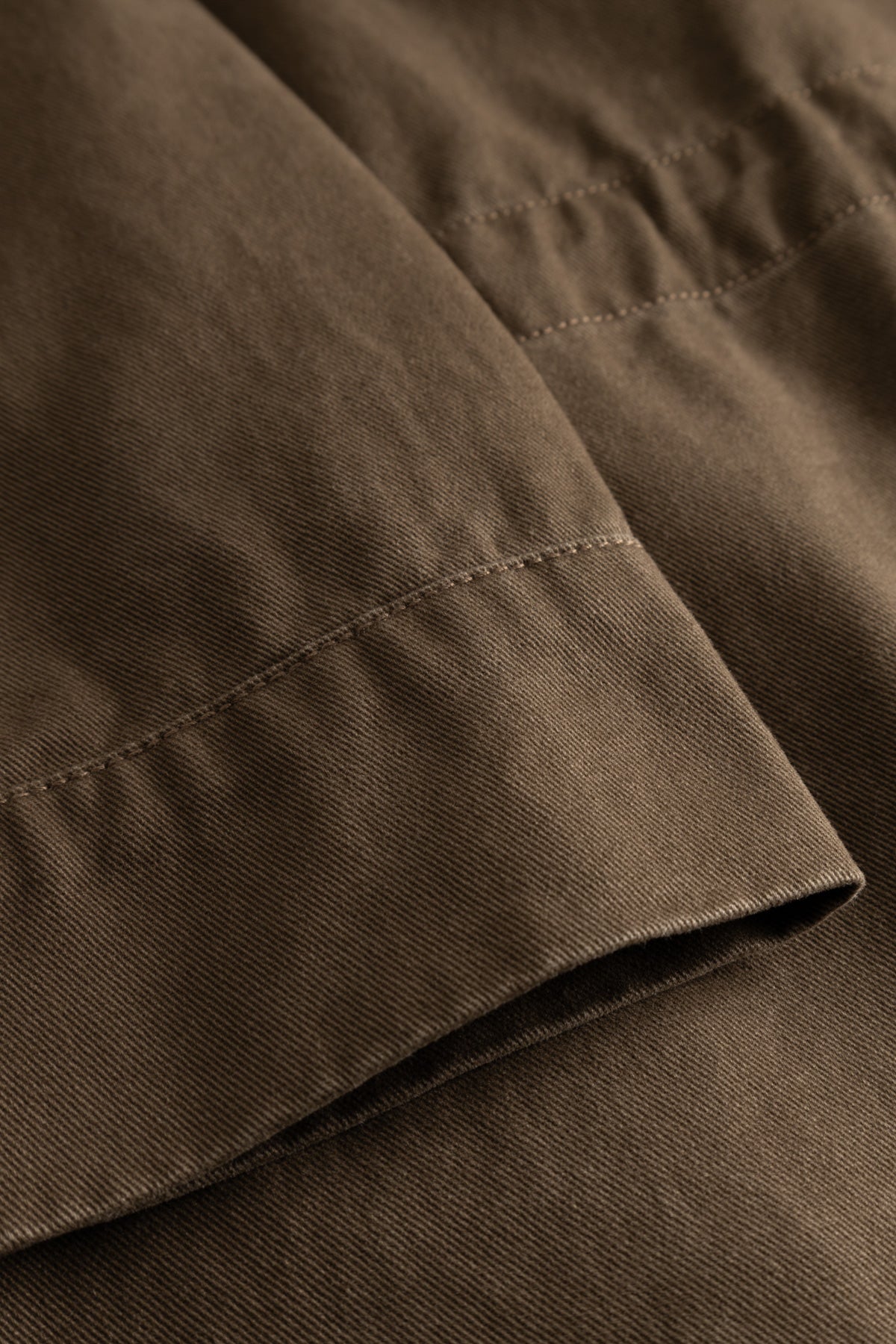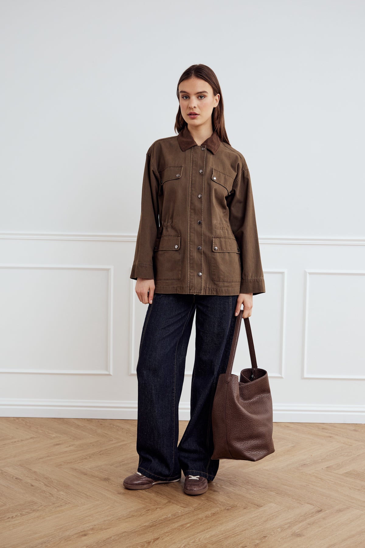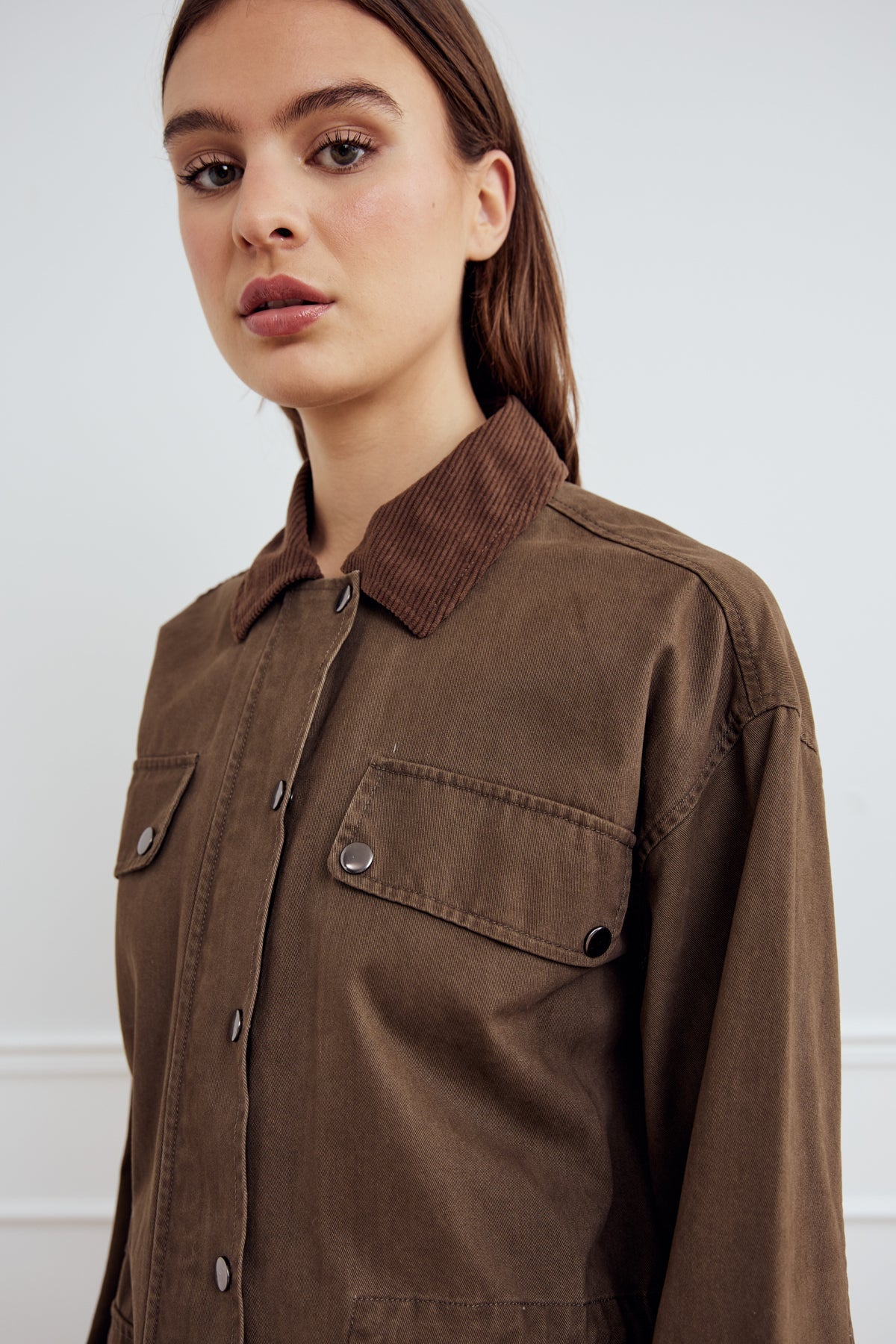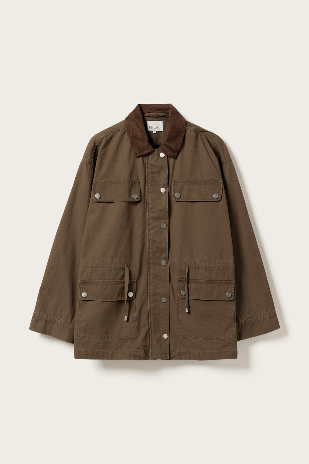 Klassiek jack van 100 katoen met knoopsluiting, vier zakken en een contrasterende kraag. Regular fit en true to size.