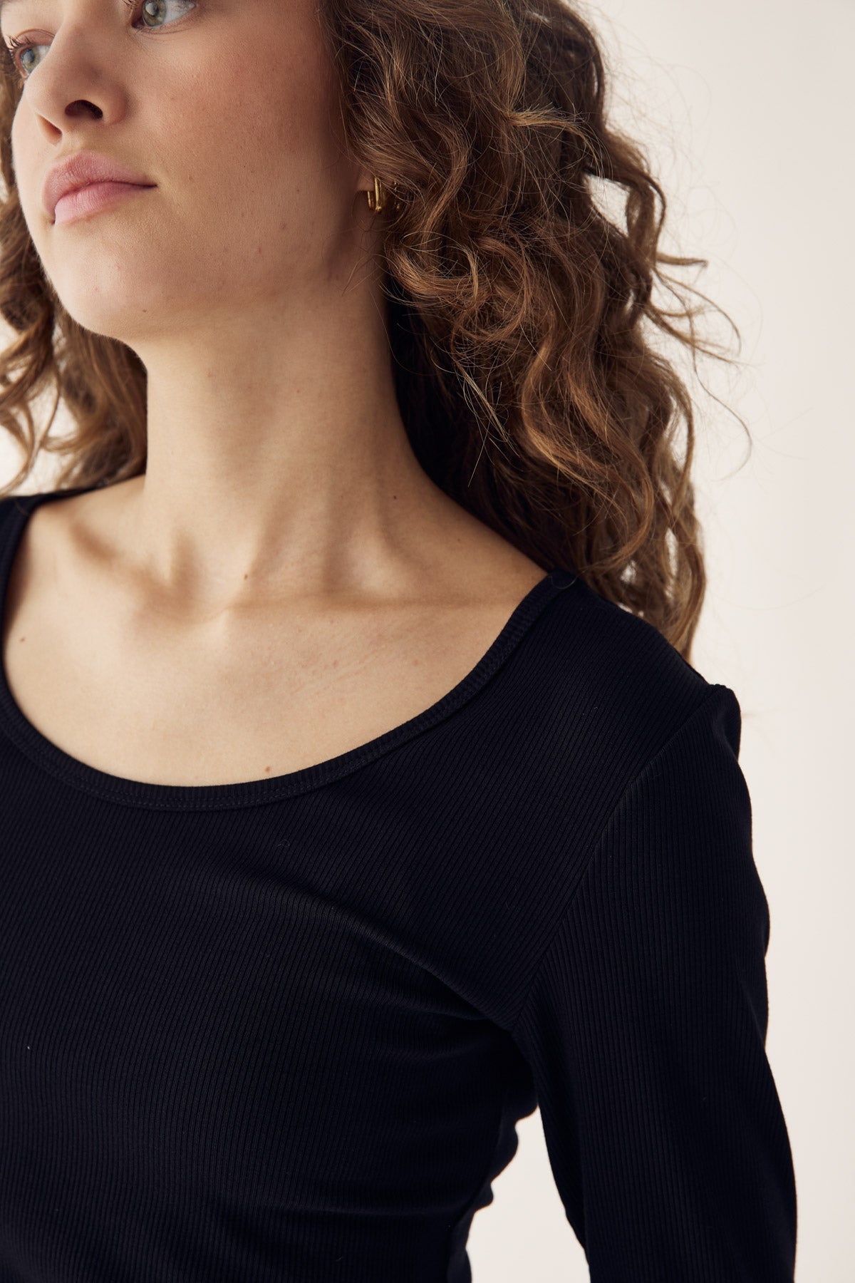 Leyton Top is een lange mouwen T-shirt van zachte viscose met ronde hals. Klassieke pasvorm maakt dit T-shirt een onmisbaar item in je basisgarderobe. Combineer hem in lagen of draag hem onder een blazer voor een verfijnde look.