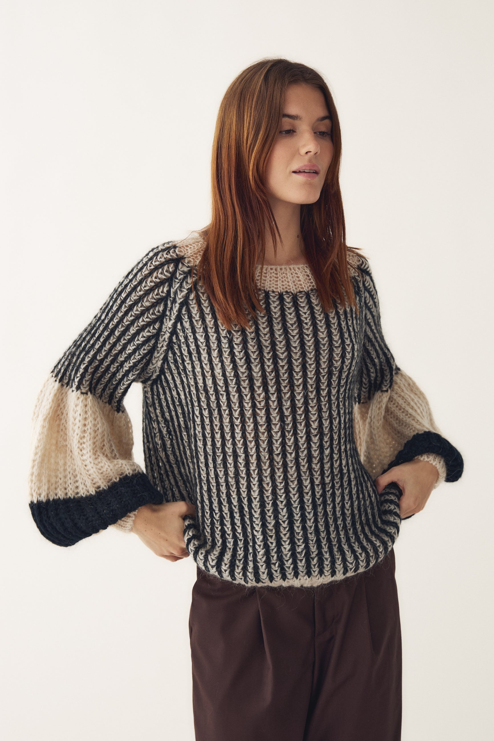 Er is 1 x Noella Liana Knit Sweater Cream/black toegevoegd aan uw winkelwagen