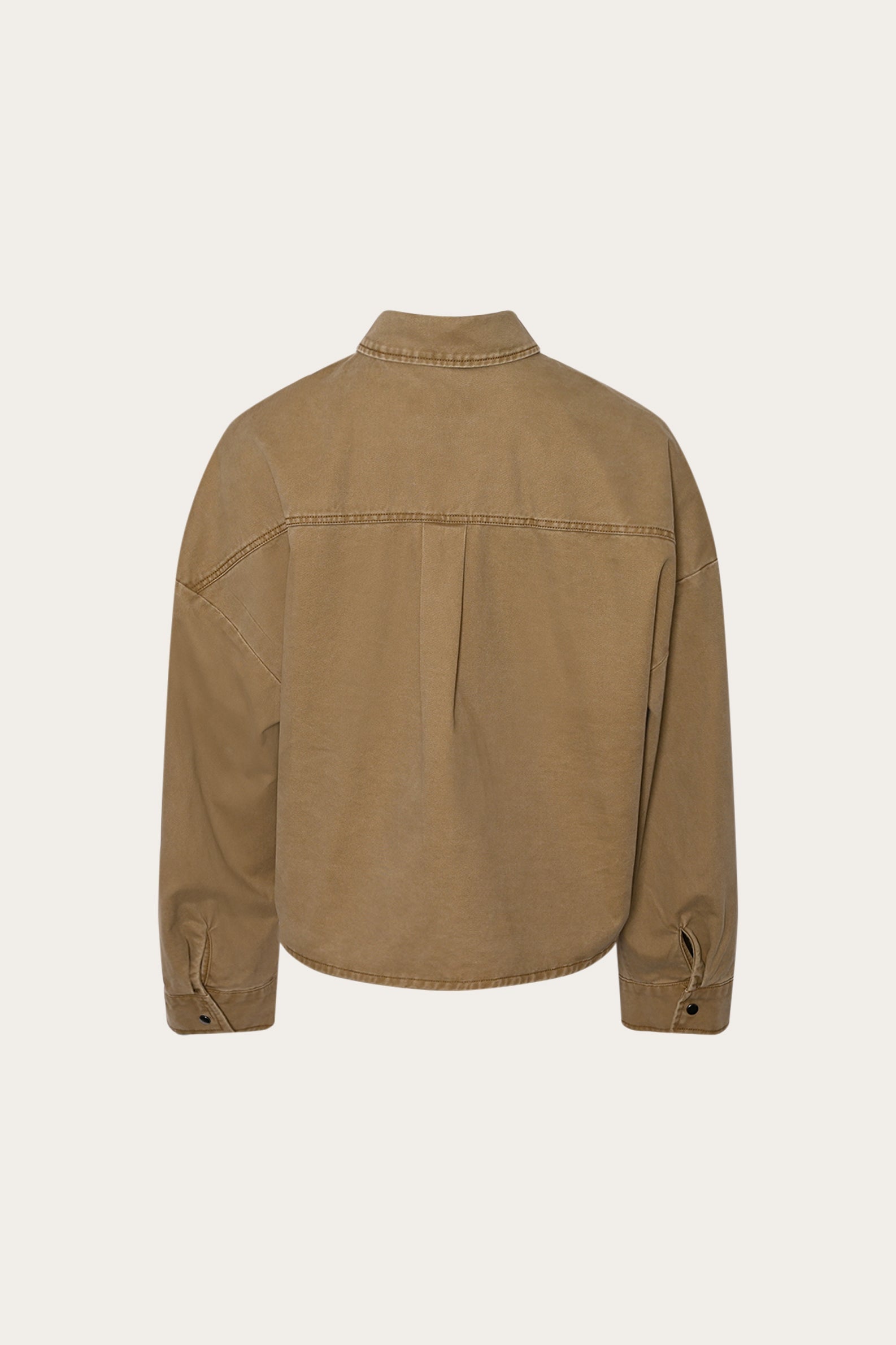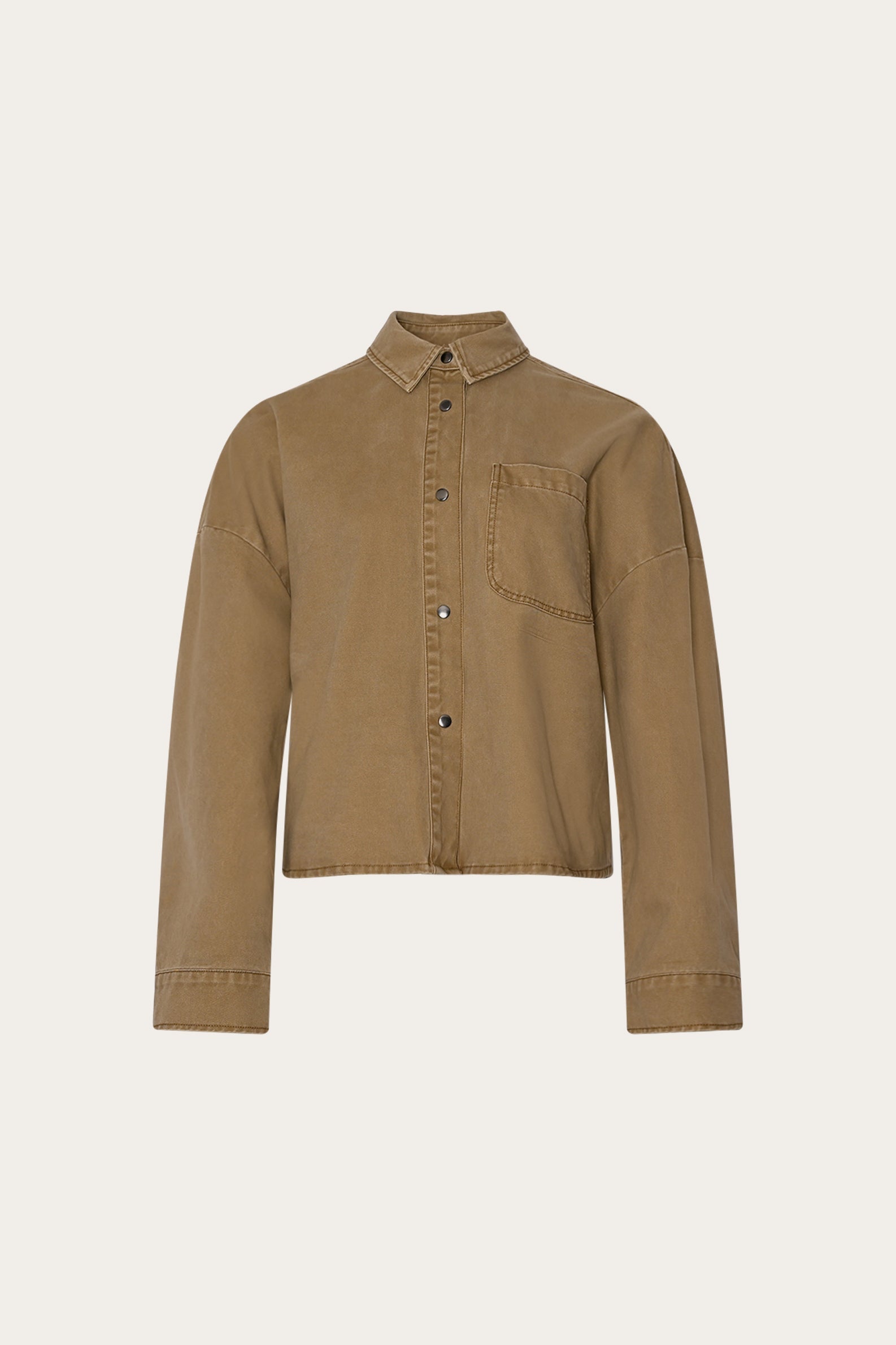 Liara Shirt is een overhemdjack met een boxy en licht cropped silhouet, verlaagde schouders en drukknoopsluiting. Het overhemd heeft een klassieke kraag, borstzakdetail en een losse pasvorm.