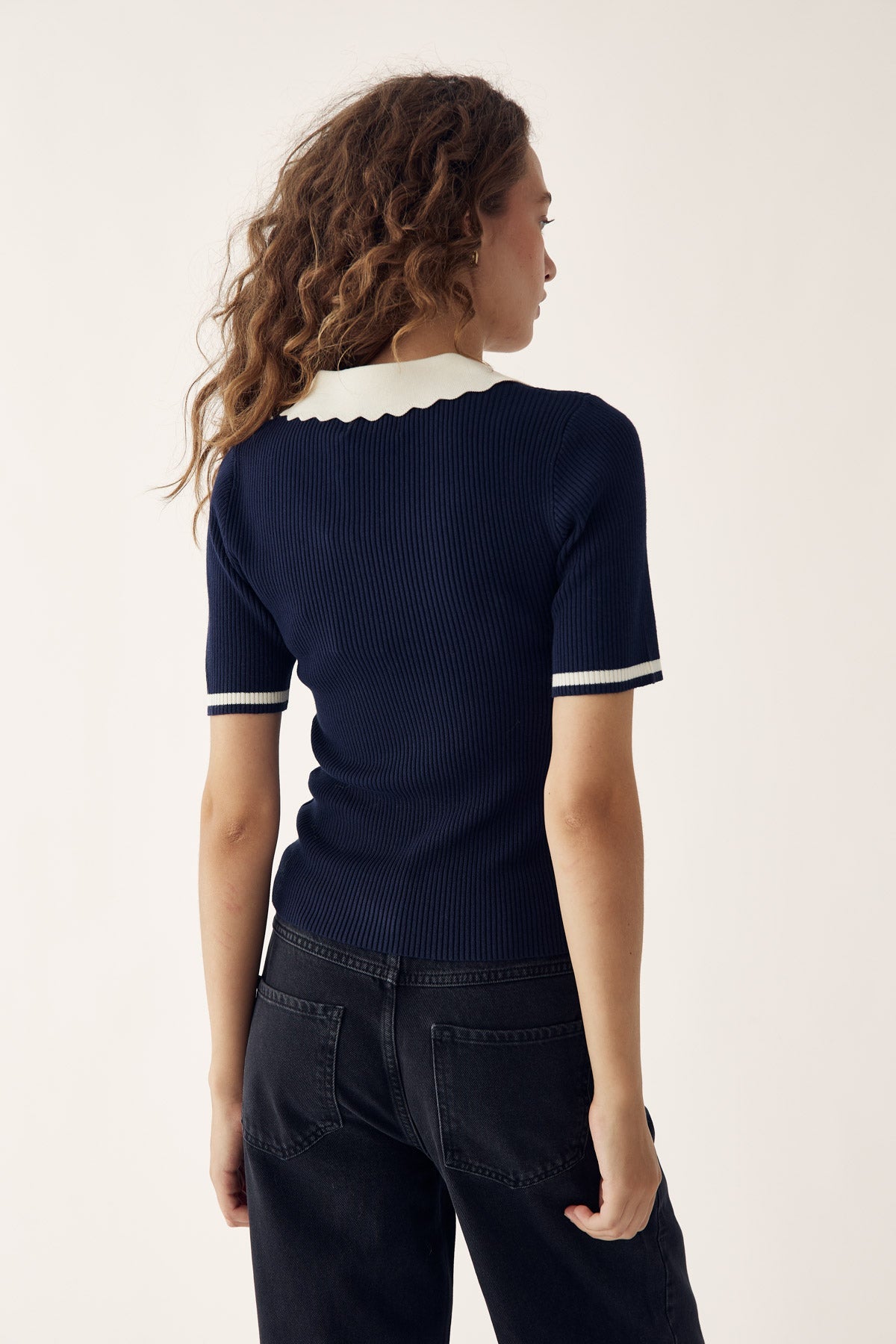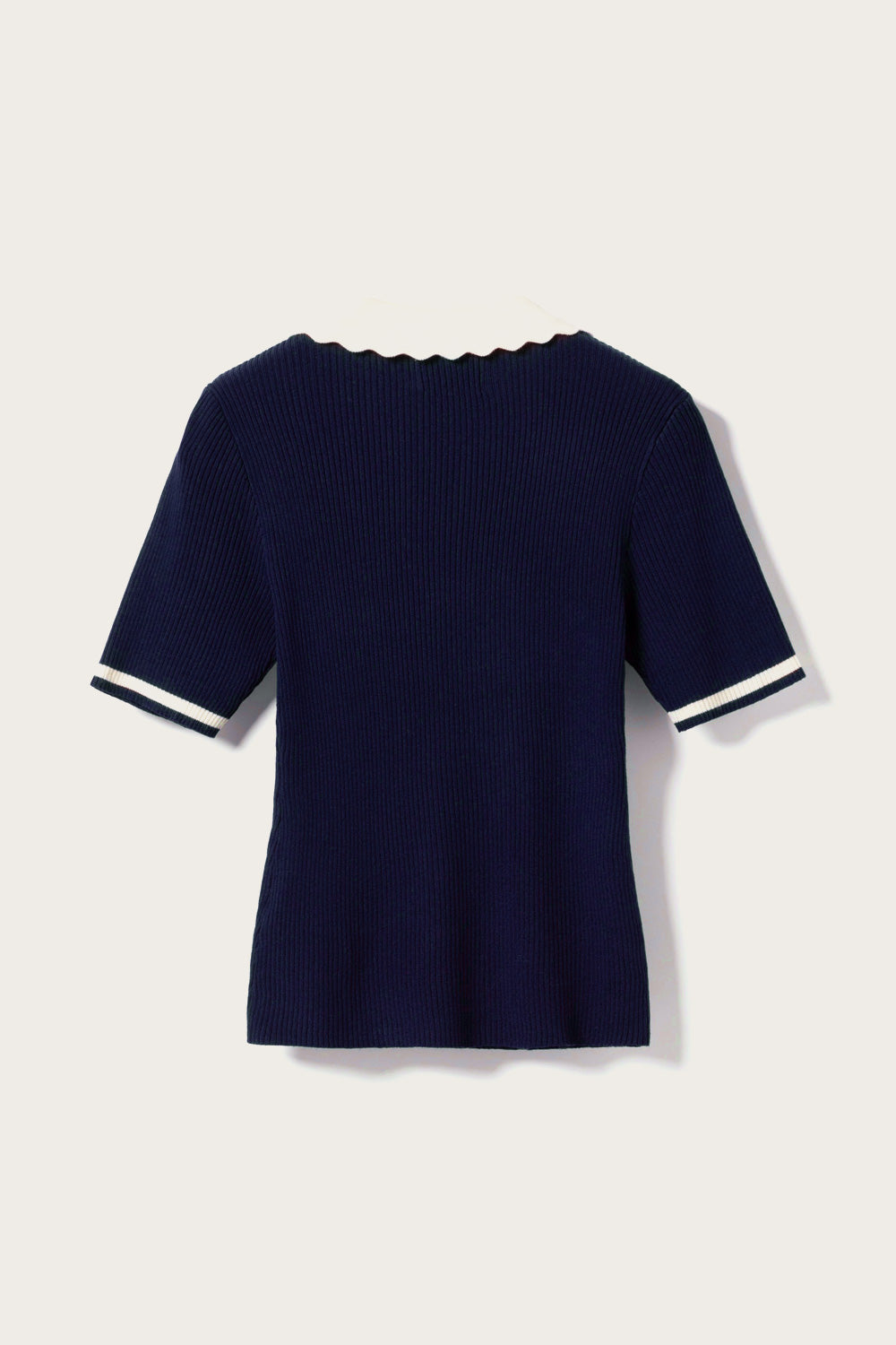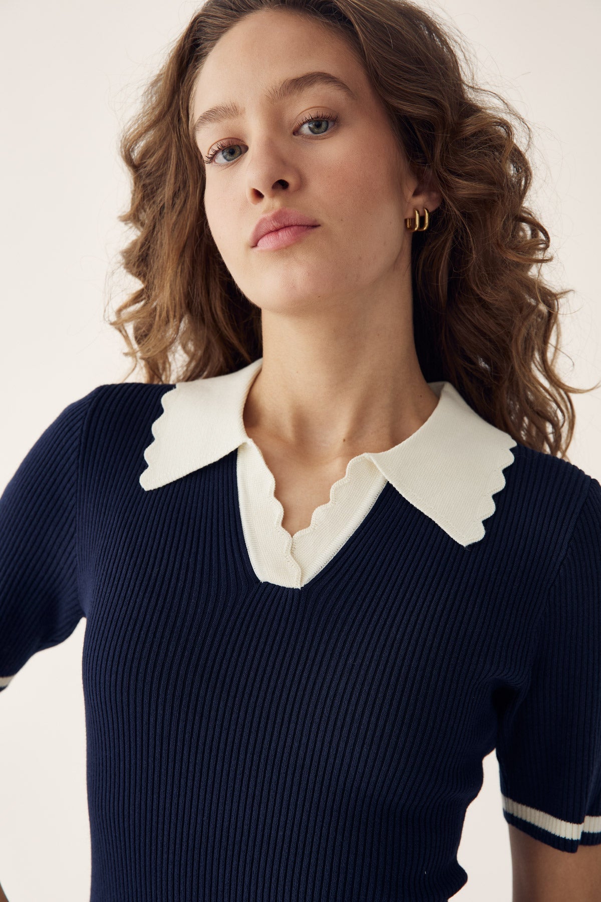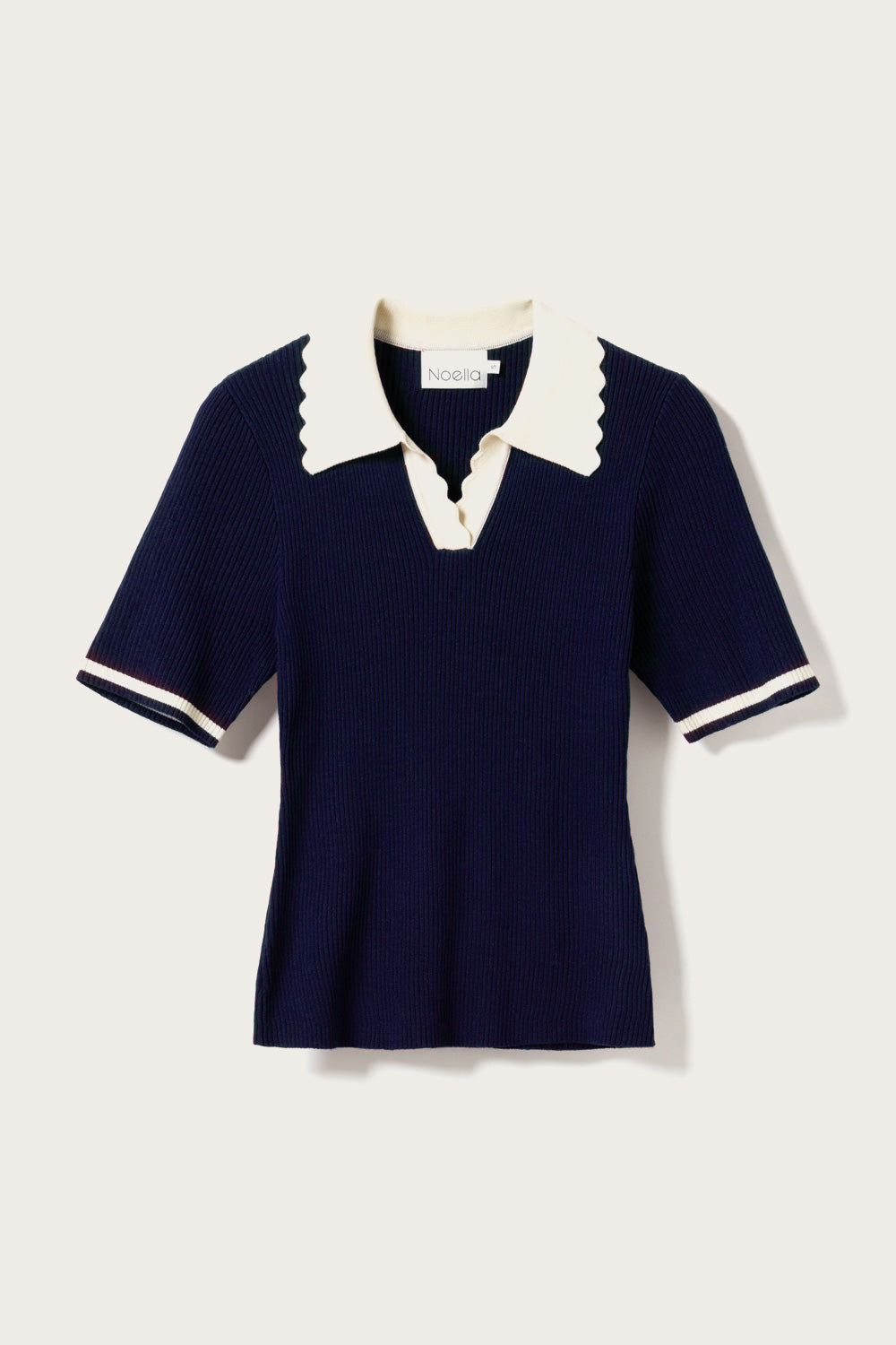 De Lilo Polo Knit is een gebreide poloshirt van 100 viscose met korte mouwen, ribdetails en een contrasterende witte kraag. De pasvorm is klassiek met een eenvoudig en tijdloos ontwerp. De golvende structuur van de kraag geeft een romantische uitstraling. Perfect om te dragen als onderdeel van een alledaagse outfit.