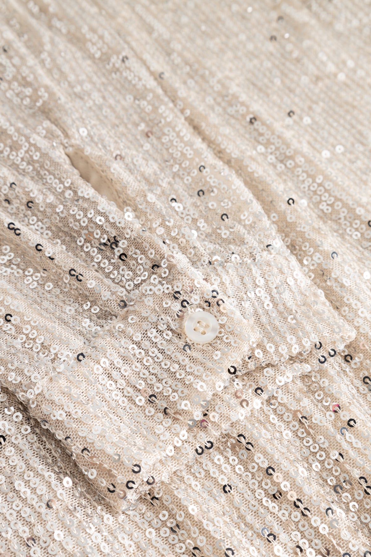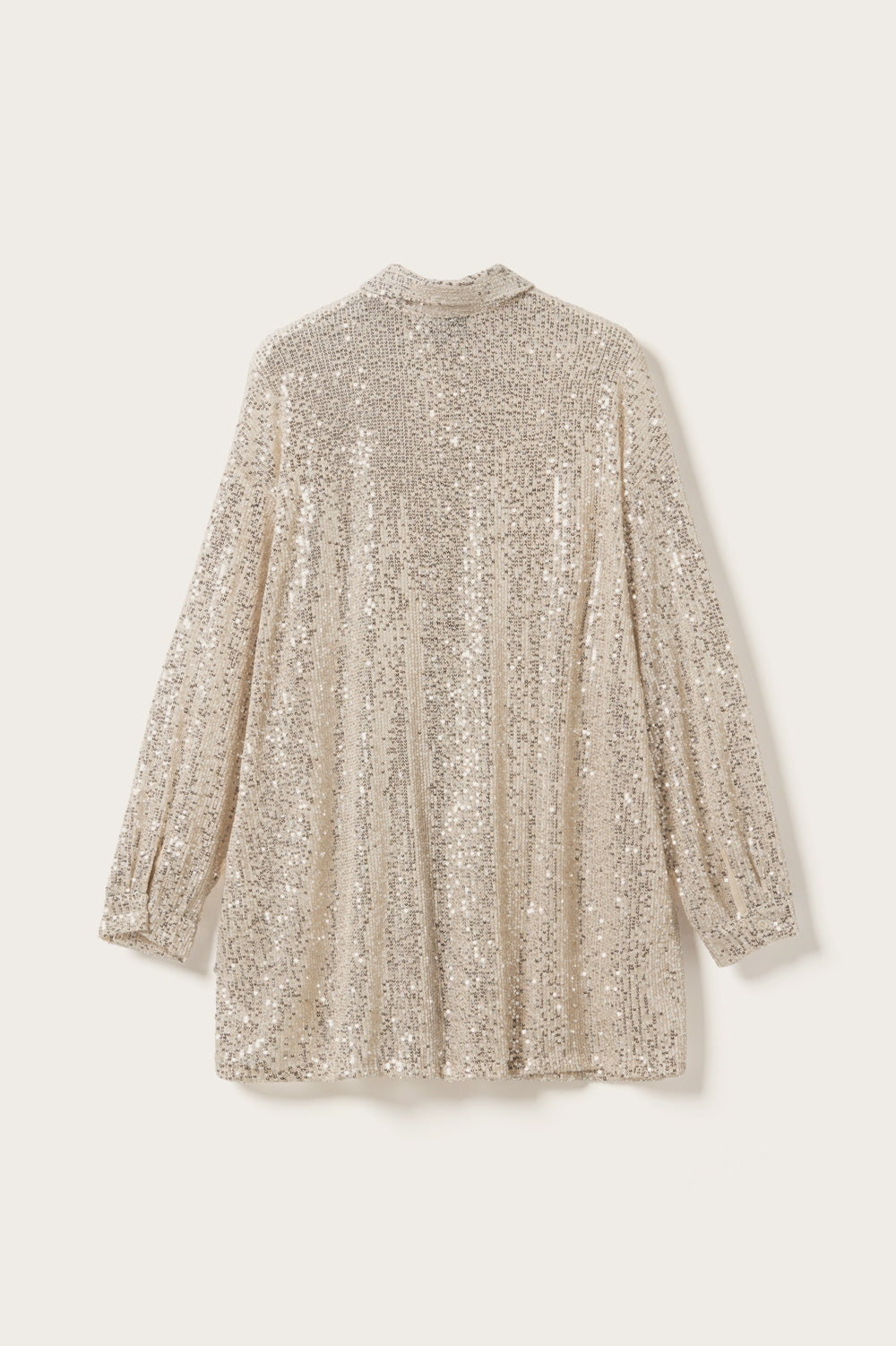 Lizanne Shirt is een pailletten overhemd met lange mouwen, klassieke kraag, knoopsluiting en een losse pasvorm.