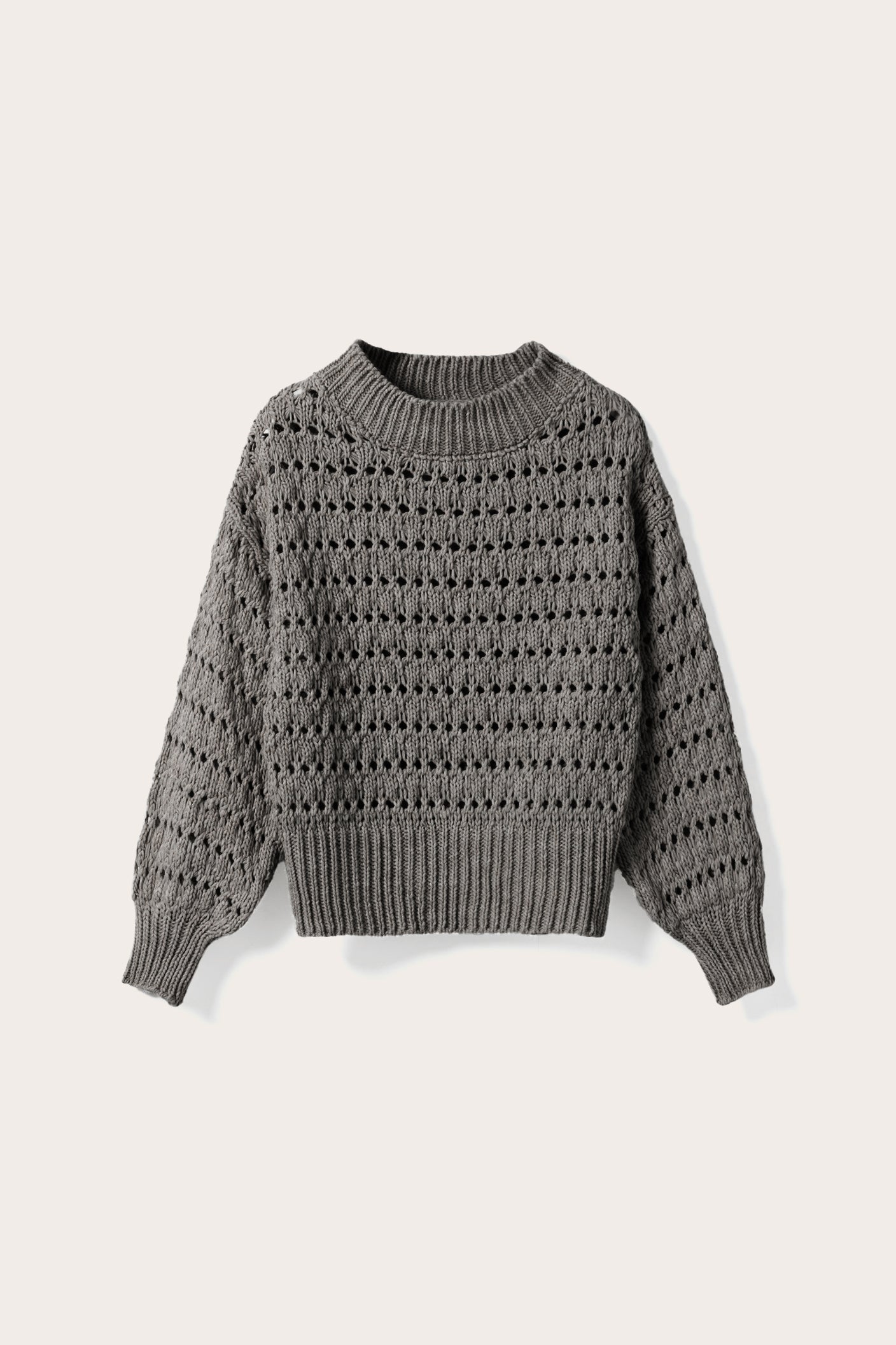Loranne Knit is een gebreide trui met gaatjespatroon en geribde boorden. De trui heeft een losse pasvorm en is gemakkelijk te stylen voor dagelijks gebruik.