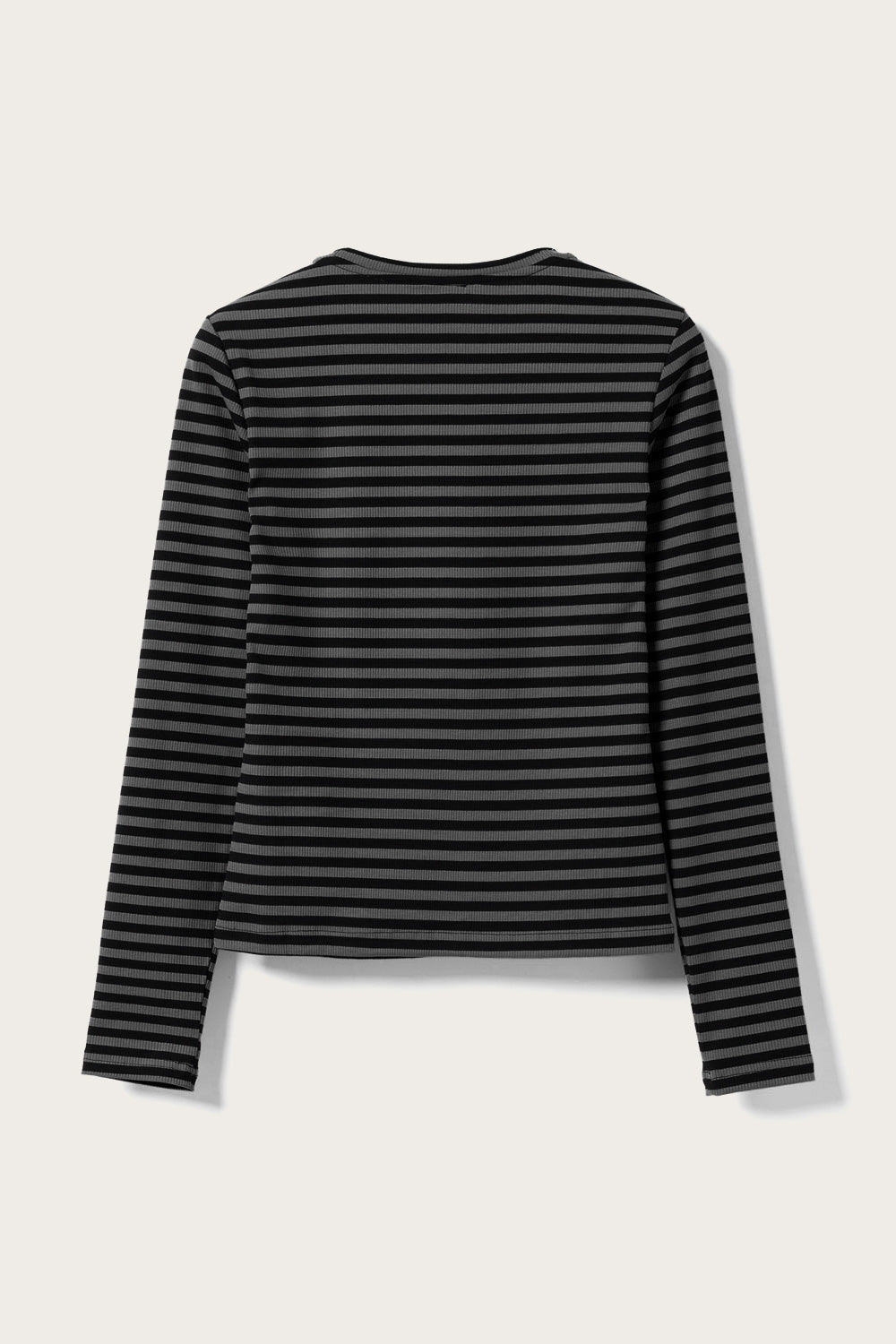 Luana Top is een langemouwen T-shirt met gestreept patroon en ronde hals. De top heeft een regular fit, wat zorgt voor een ontspannen en eenvoudige uitstraling. Gebruik hem als onderdeel van je basisgarderobe.