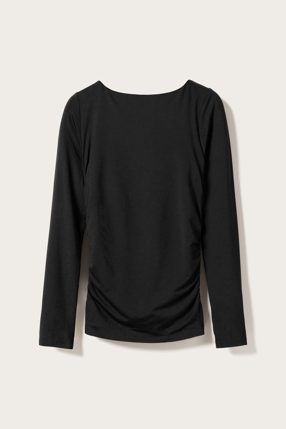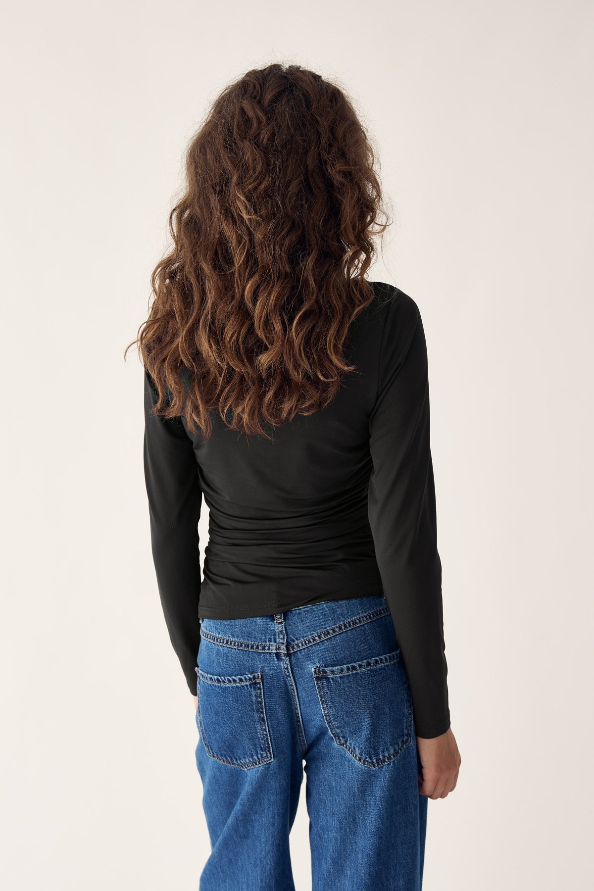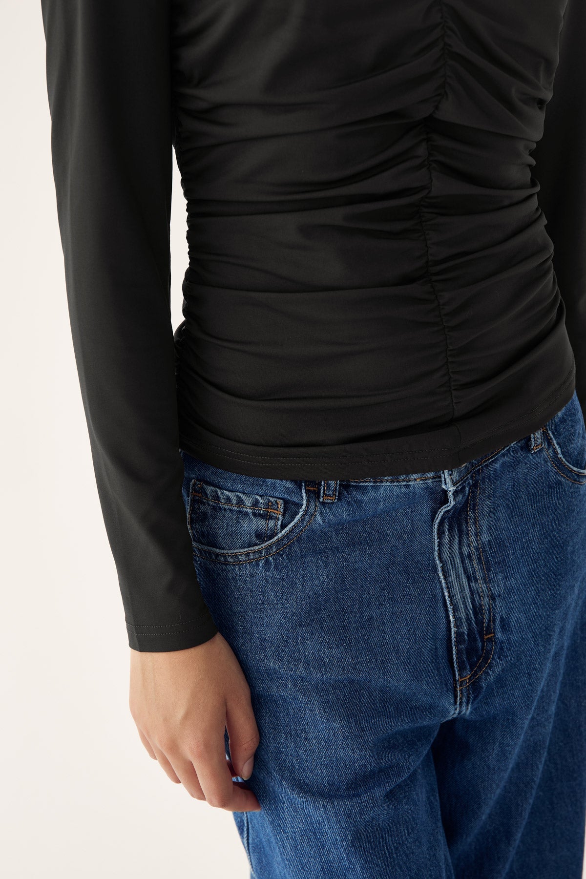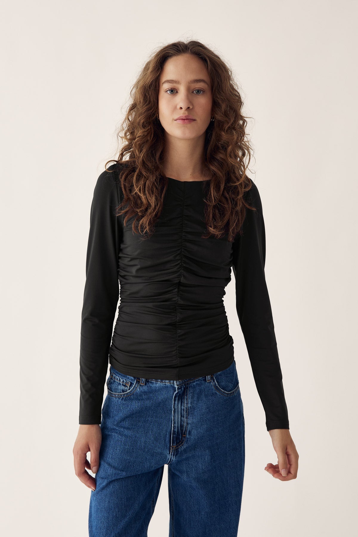 Luanna Top is een top met lange mouwen en plooidetails midden aan de voorkant, met een aangesloten pasvorm in rekbare stof.
