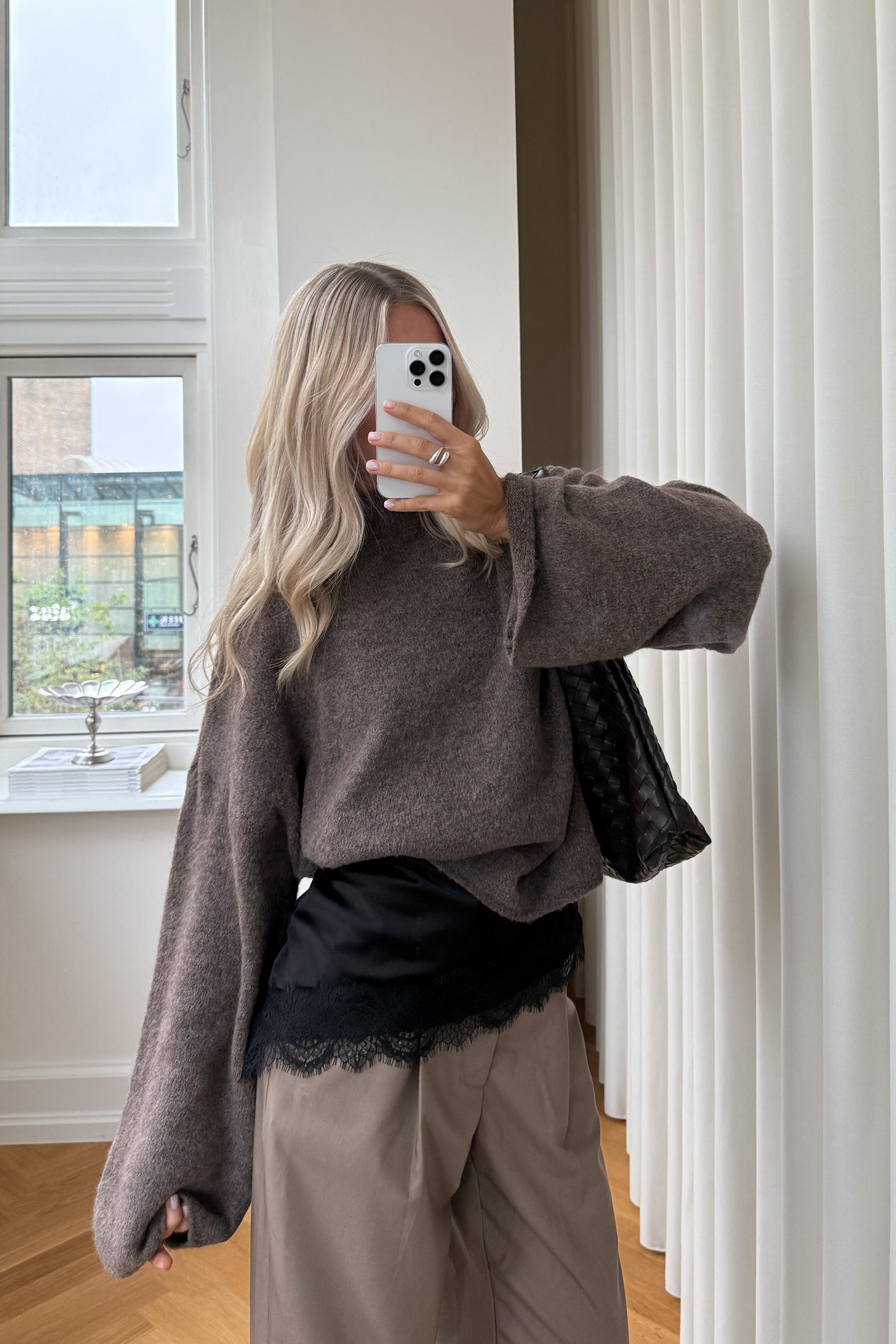 Lynzey Knit is een trui met een klassieke pasvorm en geribde kraag. Ideaal voor laagjes, draag hem over een blouse voor een verfijnde uitstraling. Combineer met een rok of jeans voor een tijdloze alledaagse look.