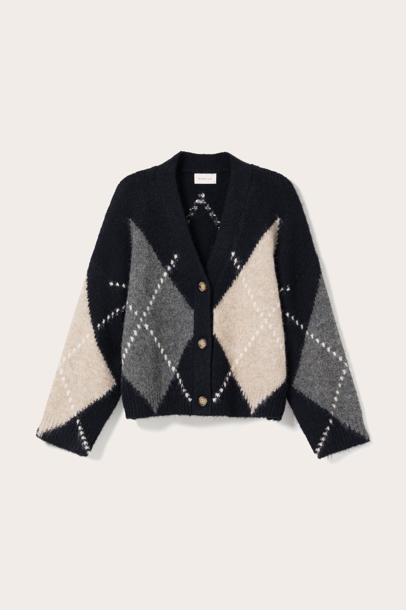 N-Laiana Knit Cardigan is een oversized vest met een klassiek argylepatroon. Ontworpen met een losse pasvorm, lange volumineuze mouwen en een iets kortere lengte. Het argylemotief geeft een tijdloze en verfijnde uitstraling, ideaal om te stylen voor de trends van dit najaar. Een echte must-have in de garderobe.
