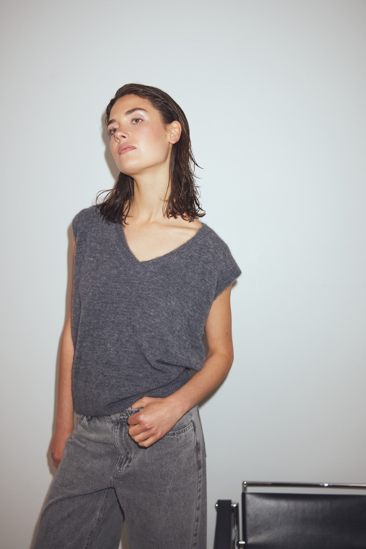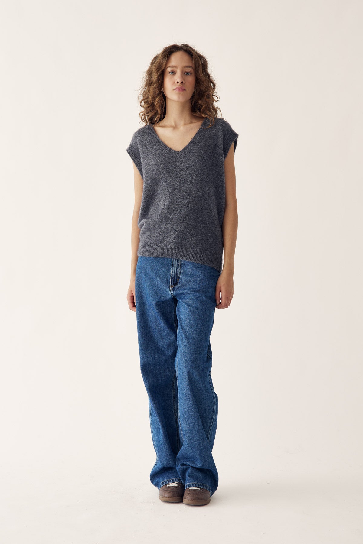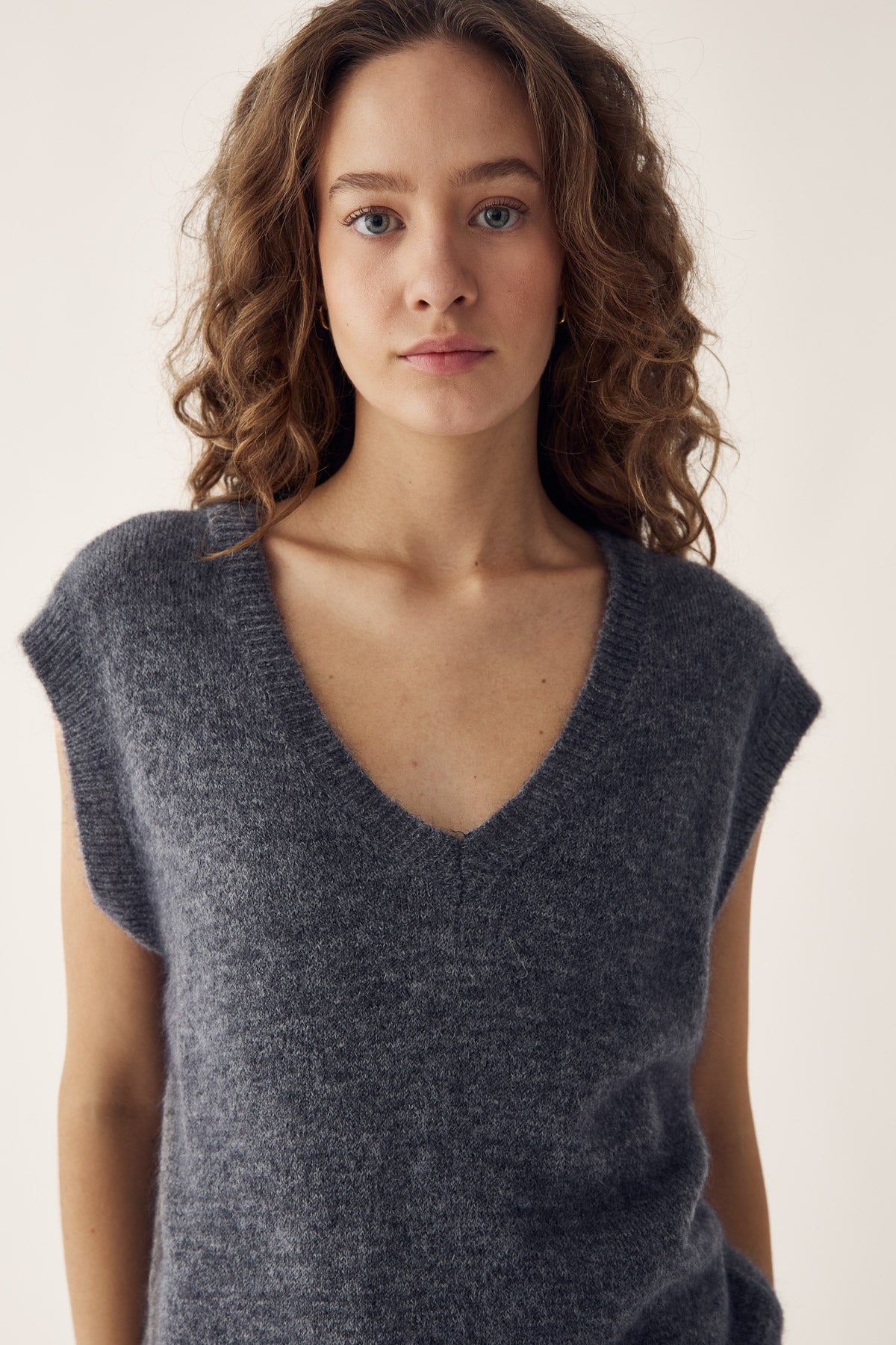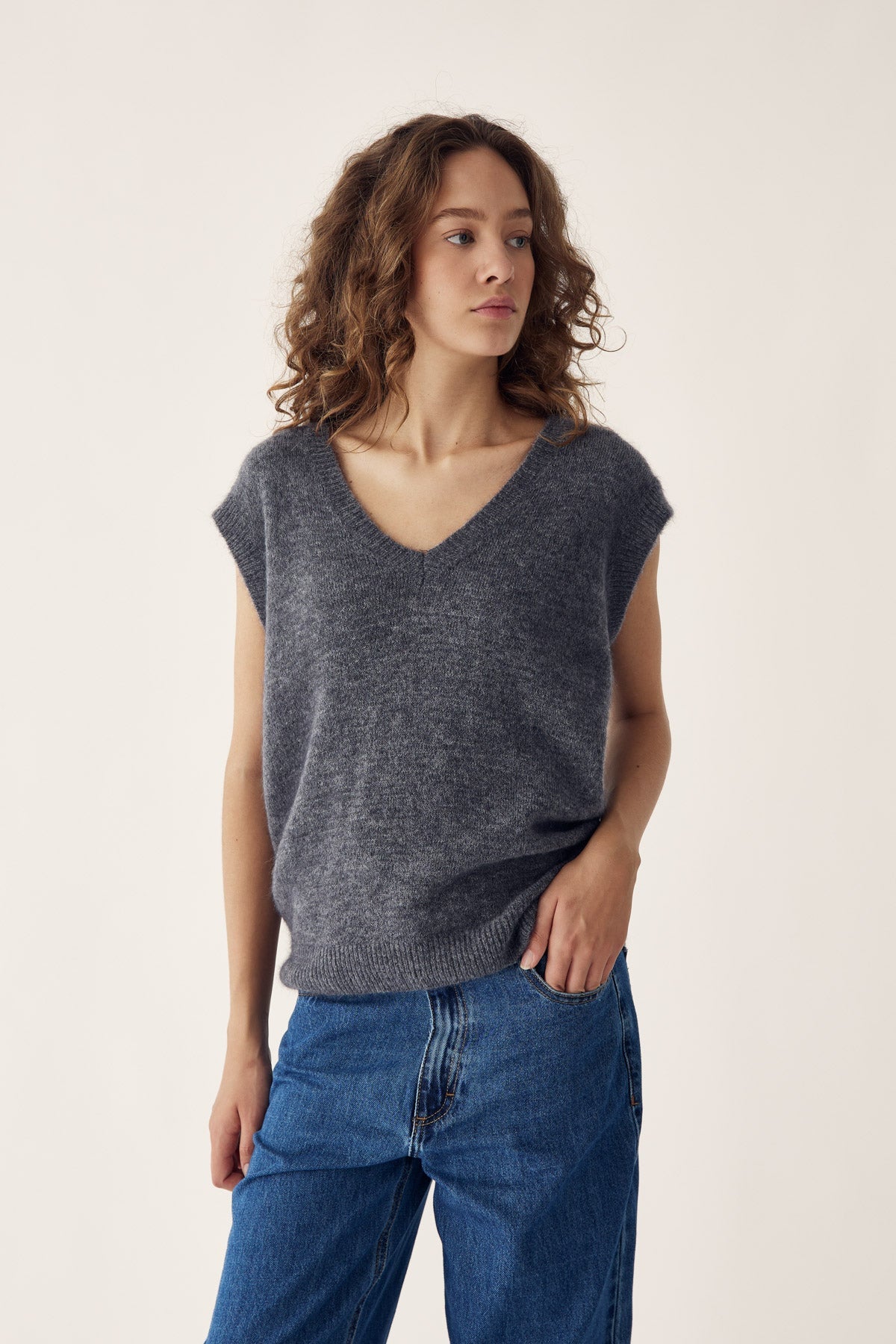 N-Leatrice Knit Vest is een gebreid vest met V-hals, zachte textuur en losse pasvorm. Het zorgt voor een comfortabele, ontspannen uitstraling en kan over een blazer of met een blouse eronder gedragen worden.