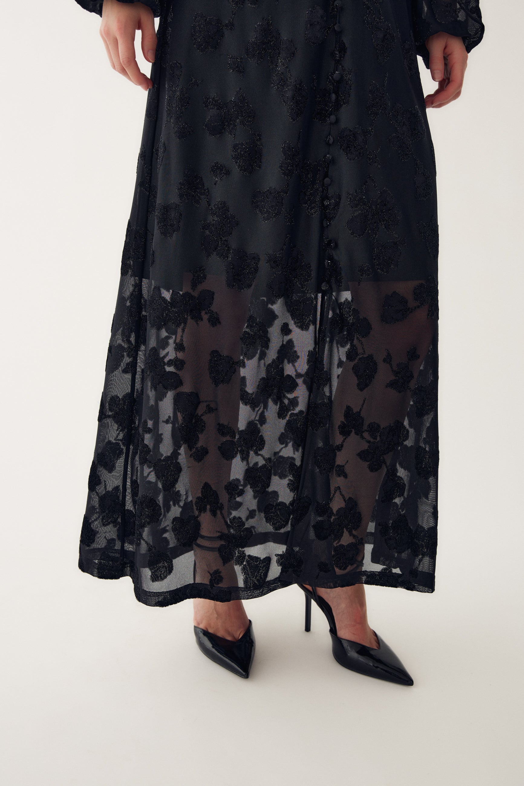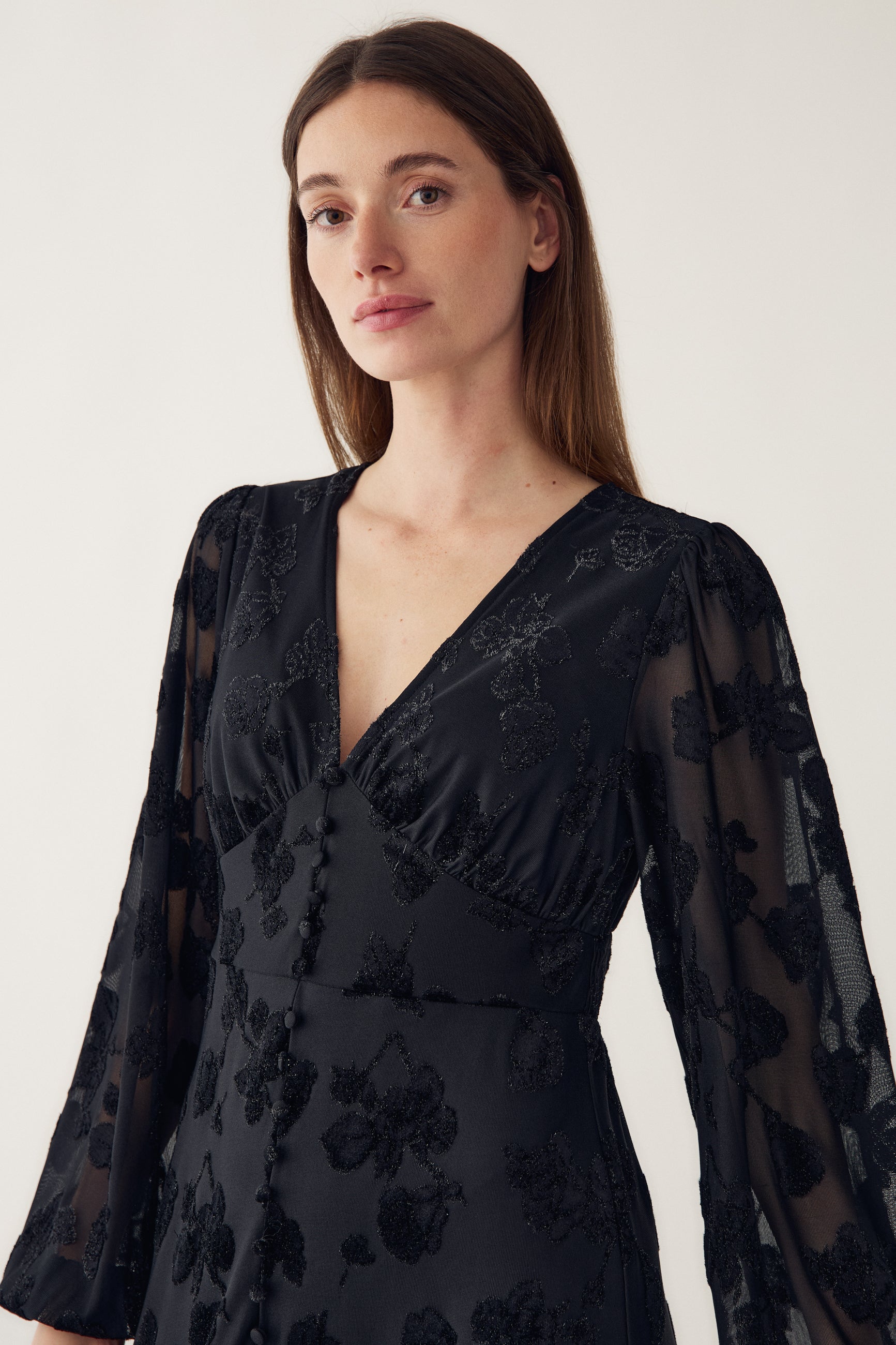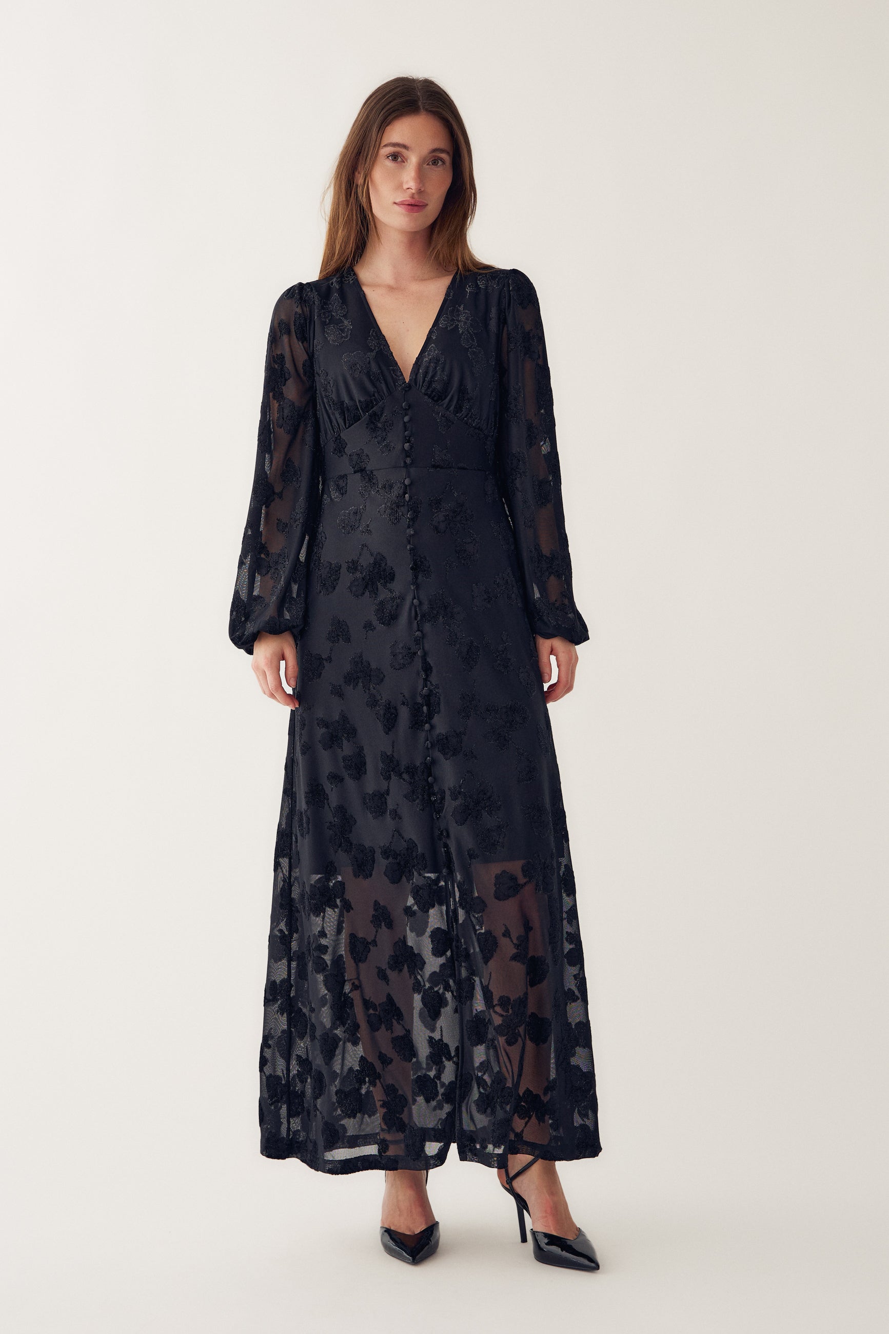 De N-Lilith Maxi Dress is een maxi-jurk met lange mouwen, een diepe V-hals en een split aan de voorkant. De Lilith Maxi Dress is verkrijgbaar in verschillende kleurcombinaties en prints.