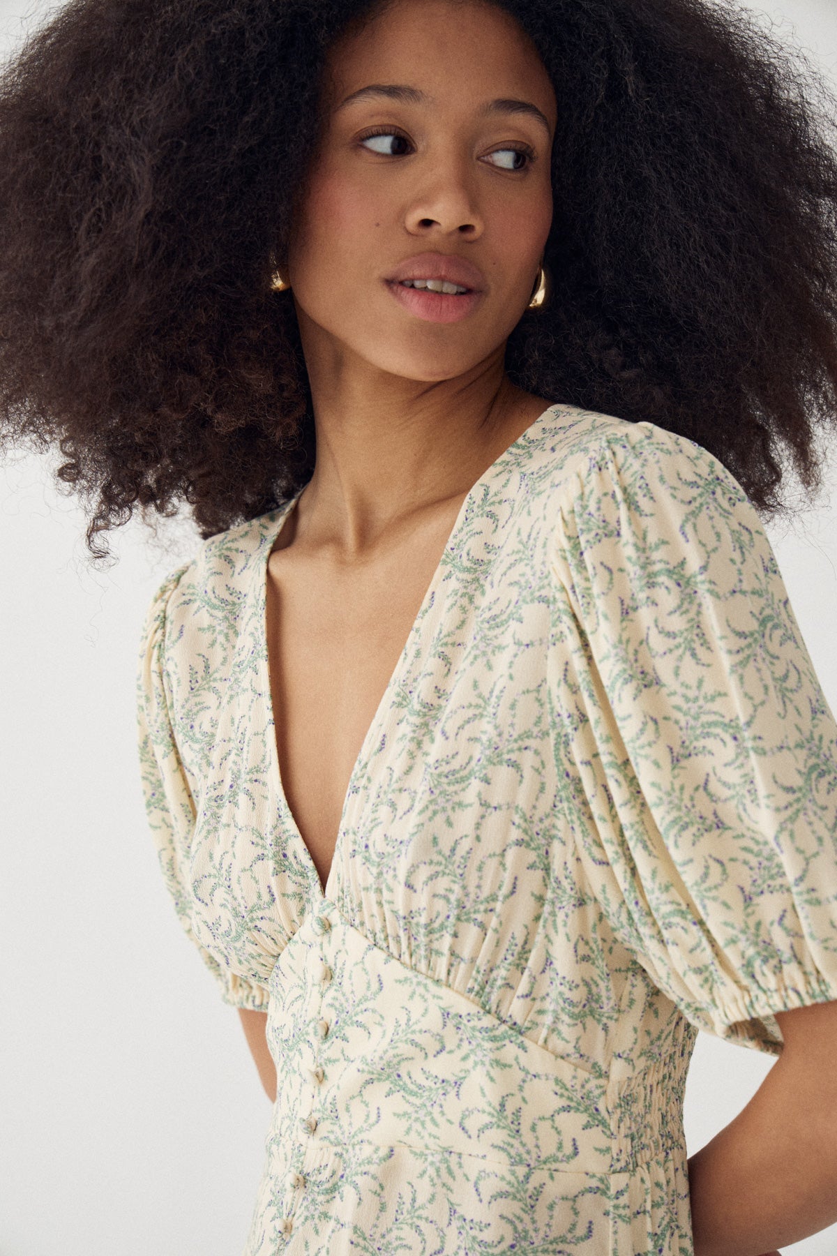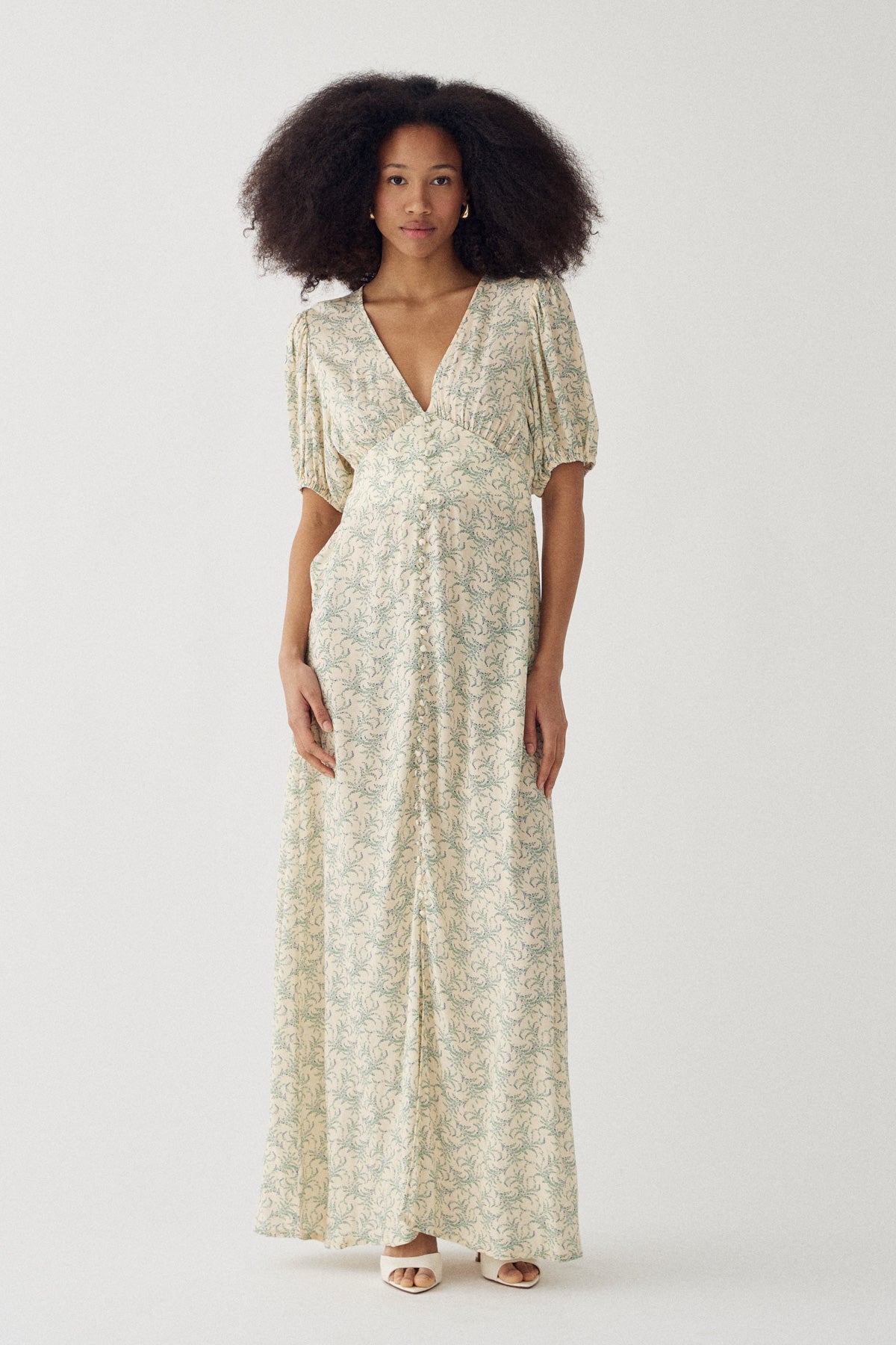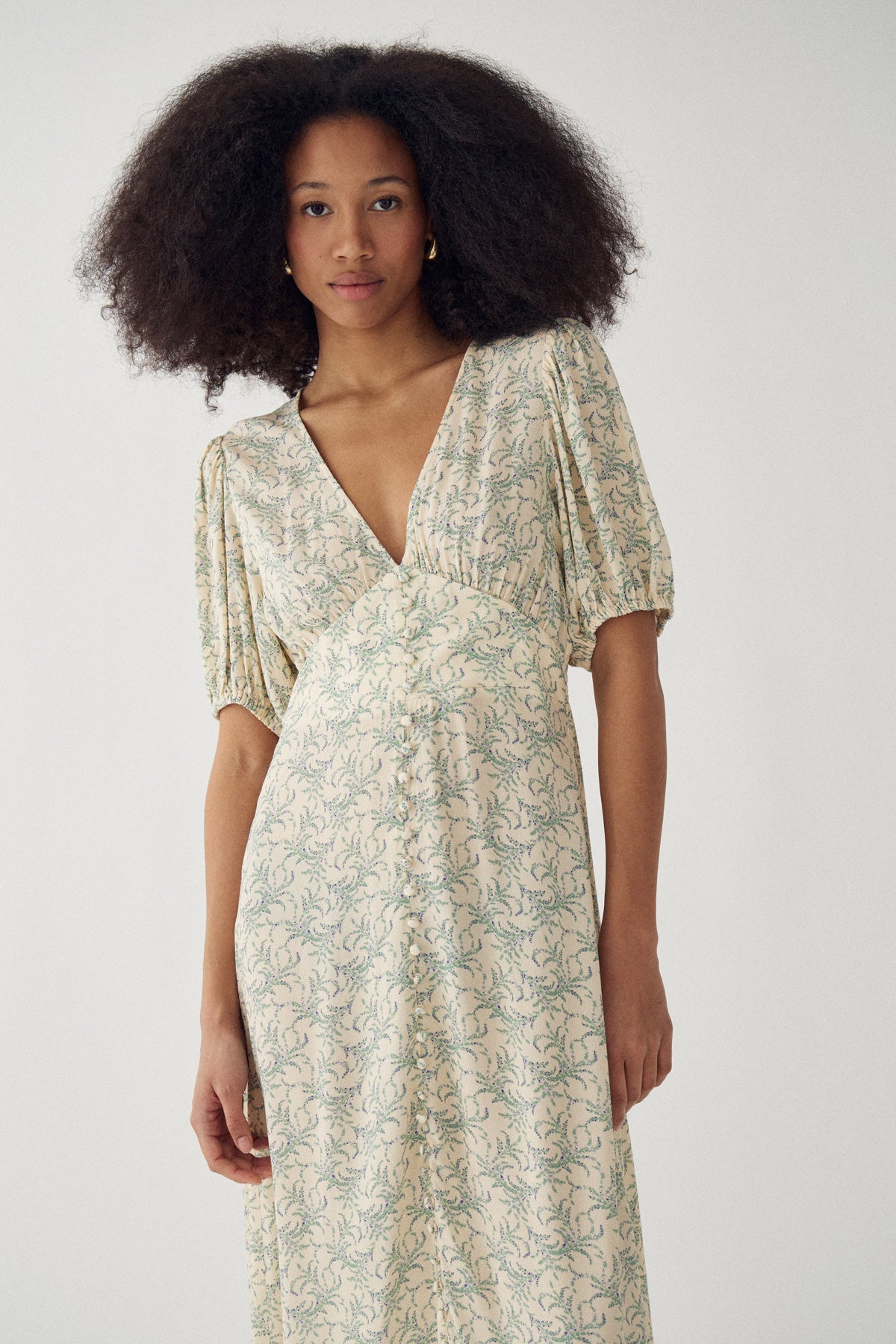 N-Lilith SS Maxi Dress heeft korte mouwen, een gedefinieerde taille en een flatterende V-hals. Het is gemaakt van zachte EcoVero™-viscose met een all-over bloemenprint voor een lichte, elegante look.